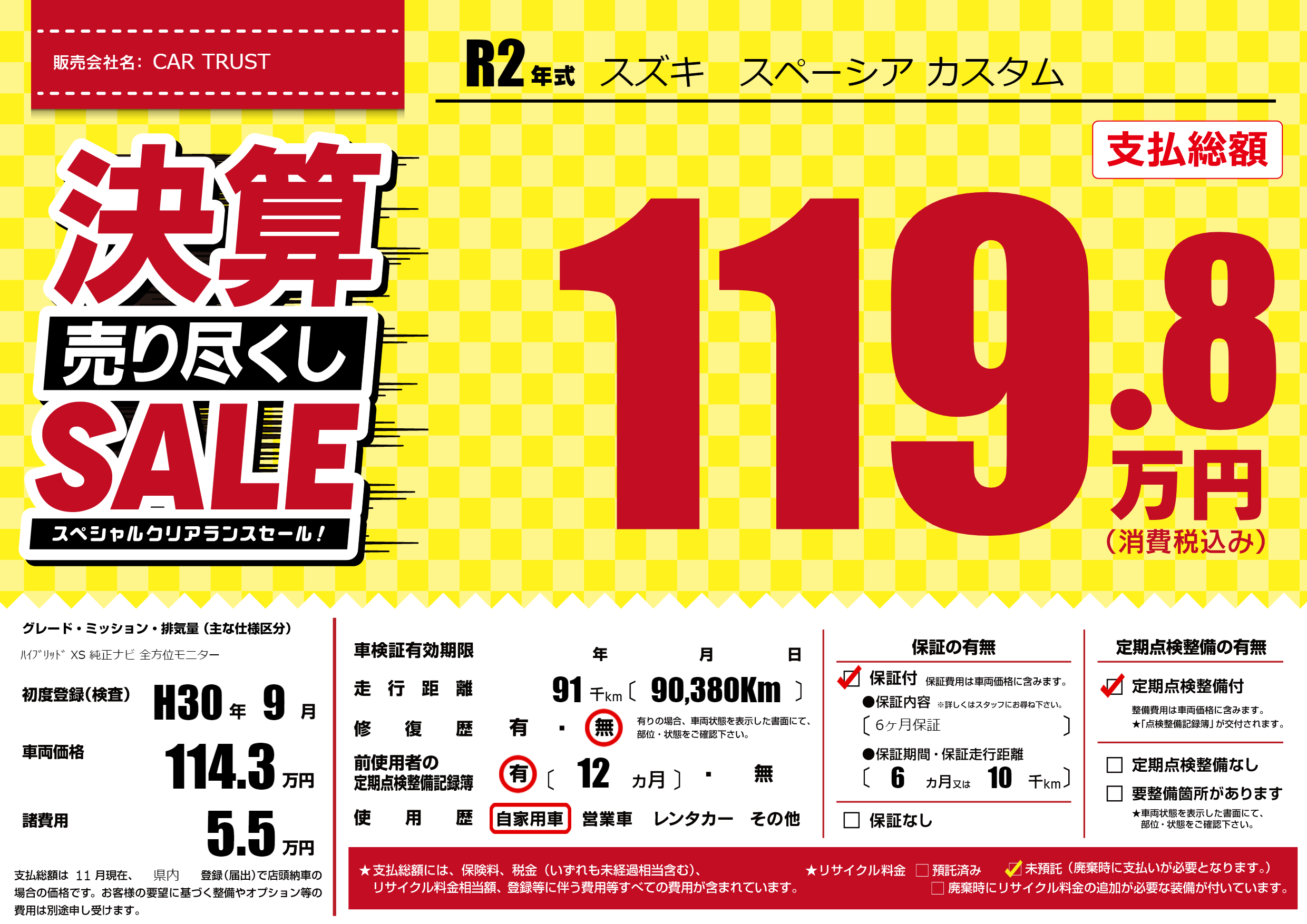 | 走行キロ | 9.1万km | 初年度登録 | H30年9月 |