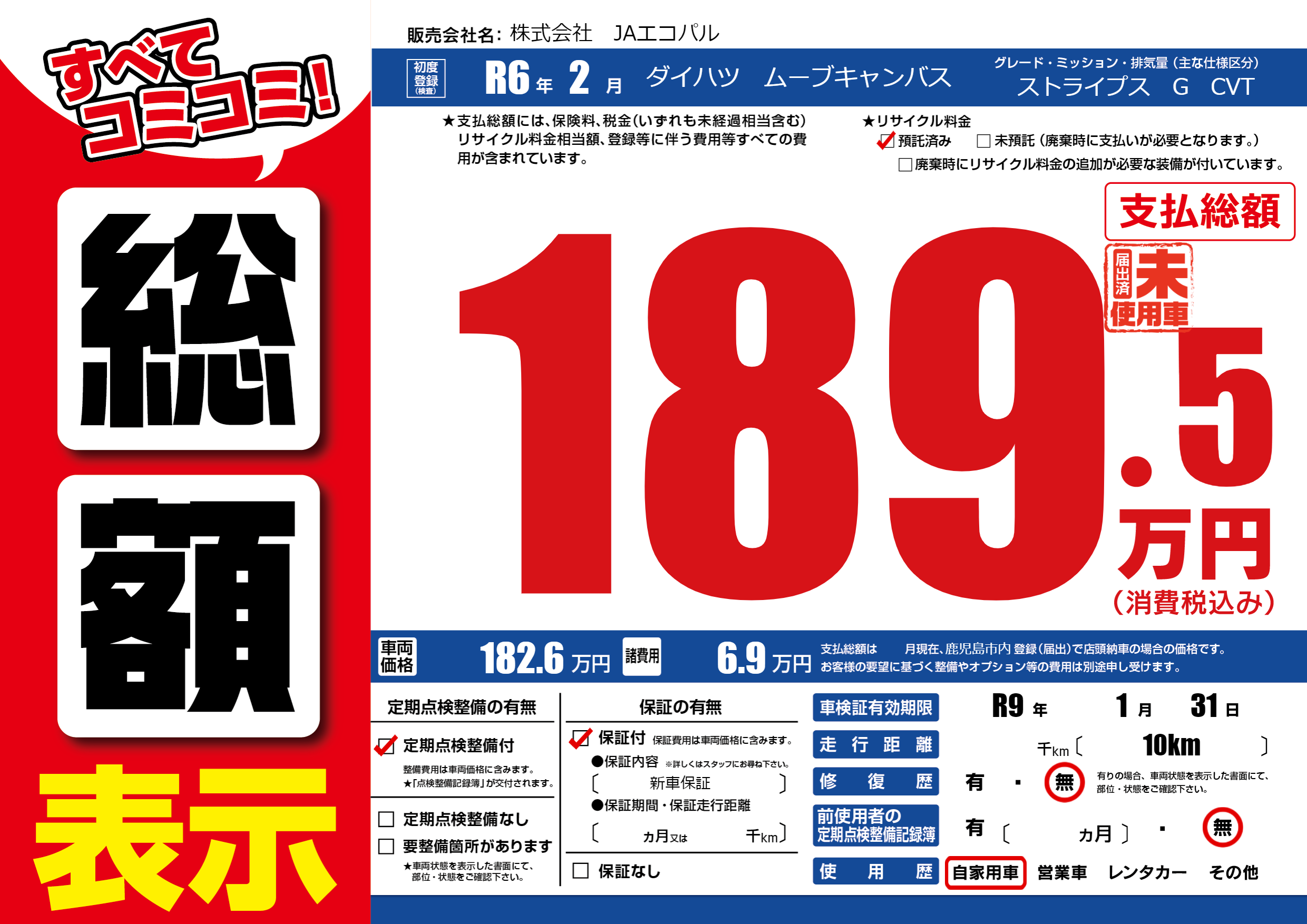 なし | 車検制限 | R9年1月31月 |