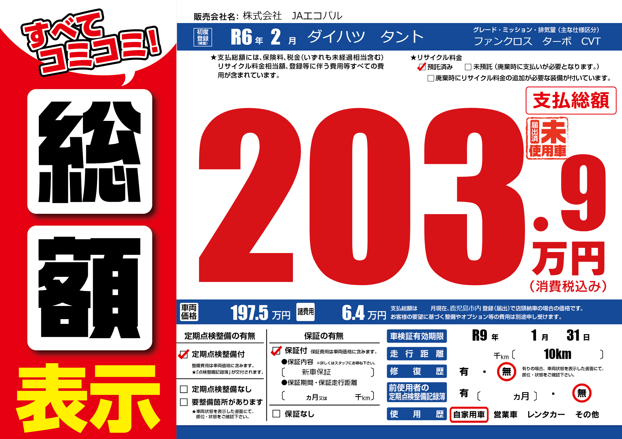 なし | 車検制限 | R9年1月31月 |