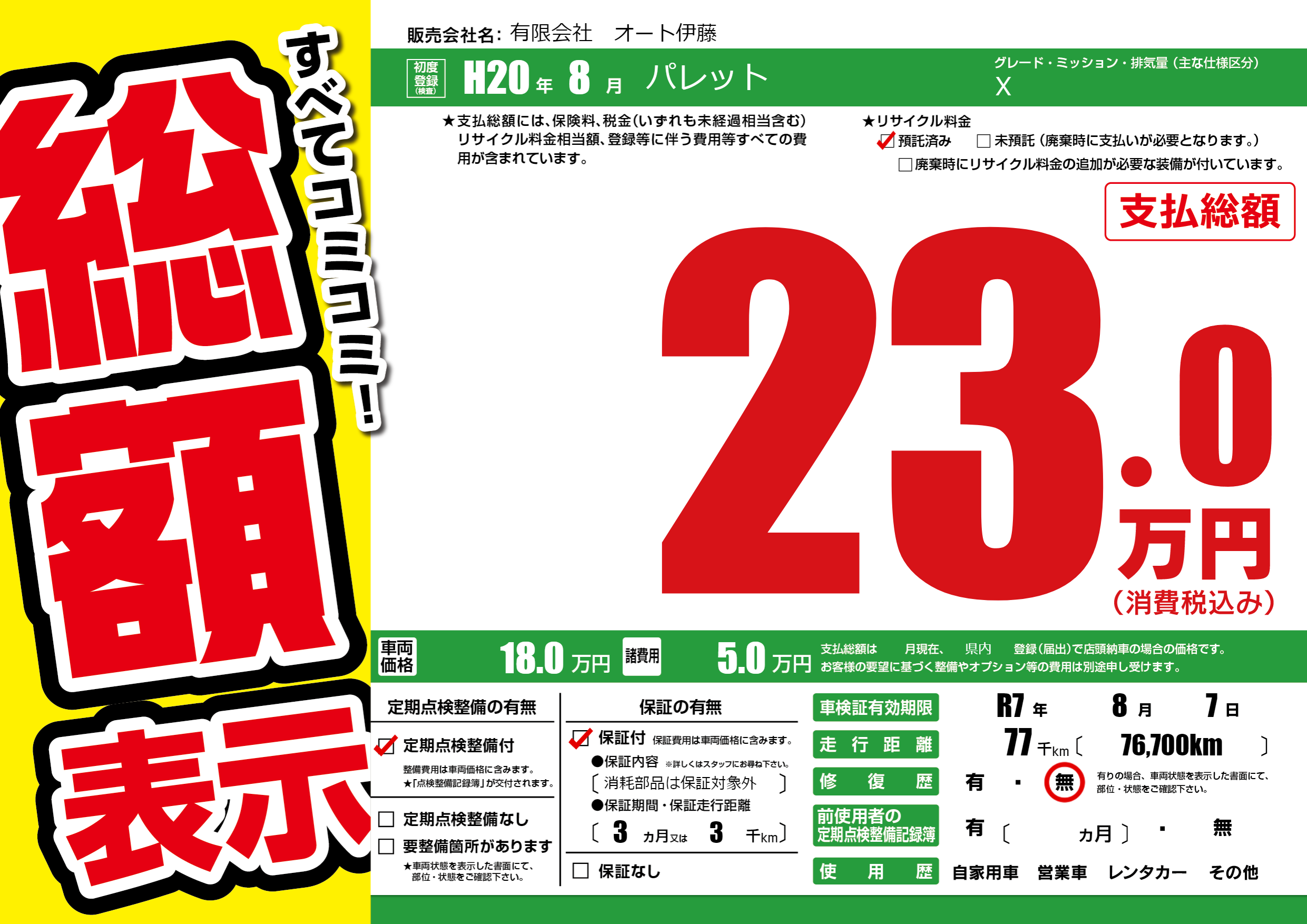 | 車検制限 | R7年 8月 7日 | ||