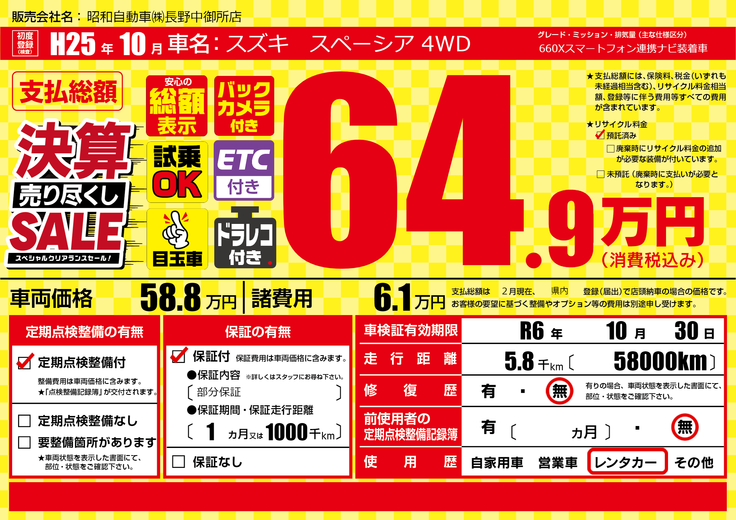 なし | 車検制限 | R6年10月30月 |