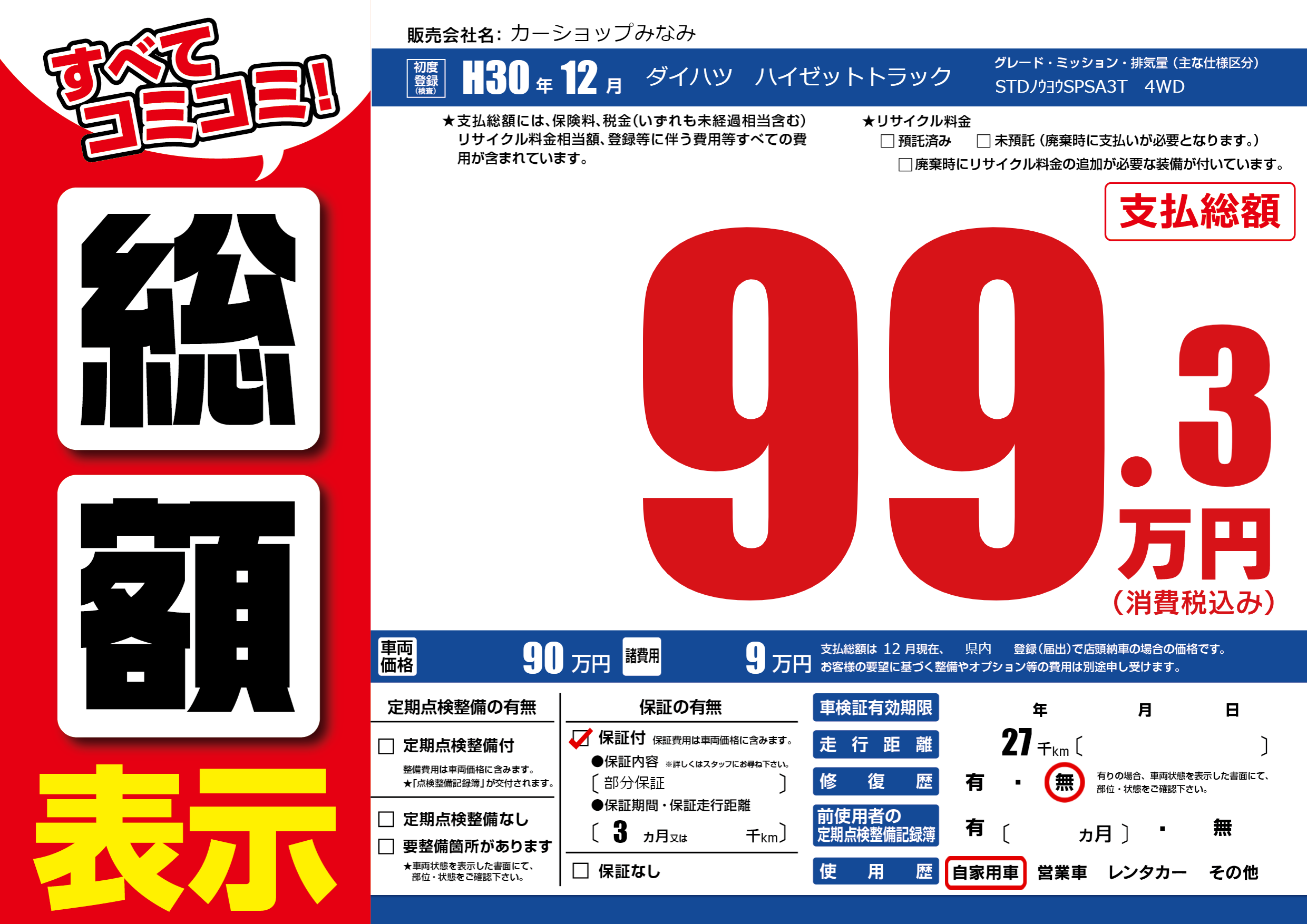 保証付き 保証内容(部分保証) 3ヶ月または()千kmまで |