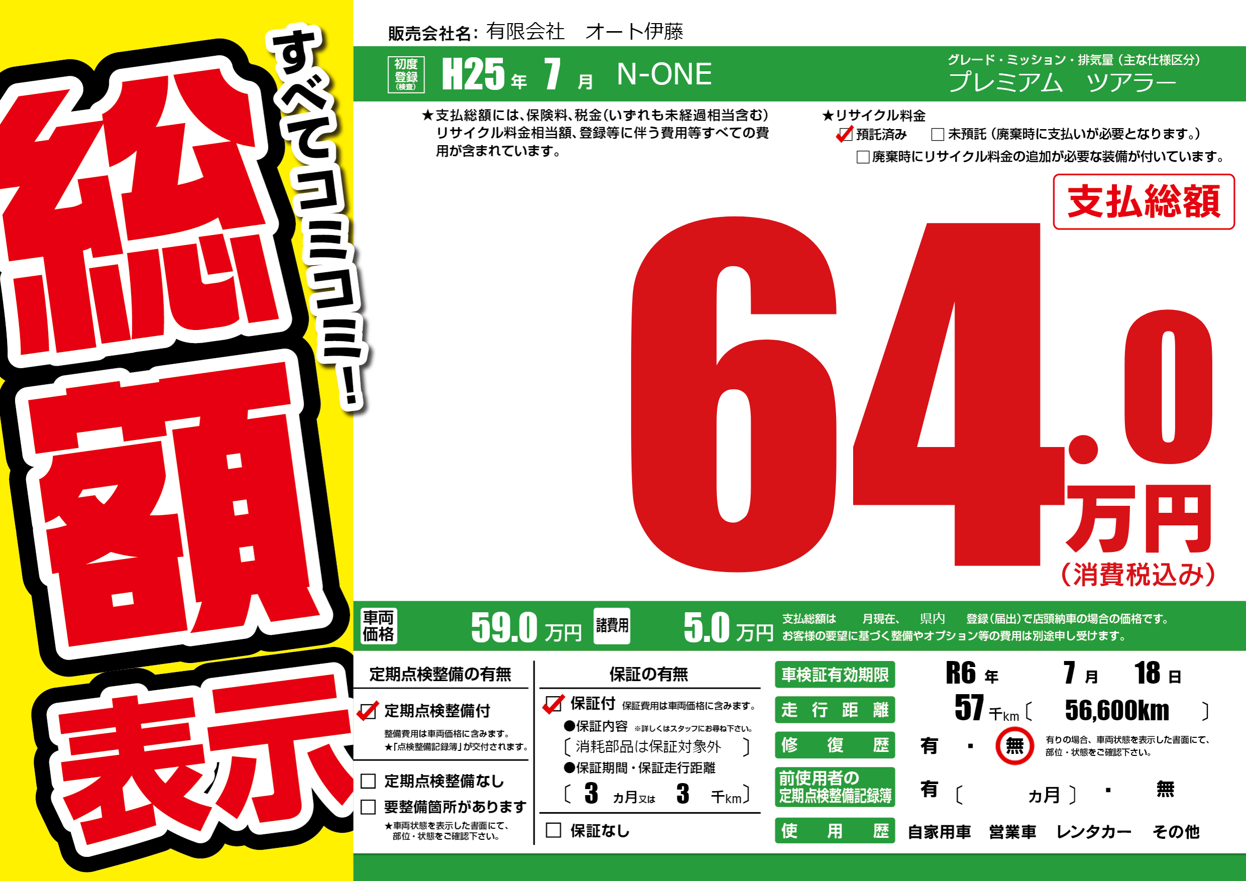 | 車名 | N-ONE | グレード ミッション 排気量 |