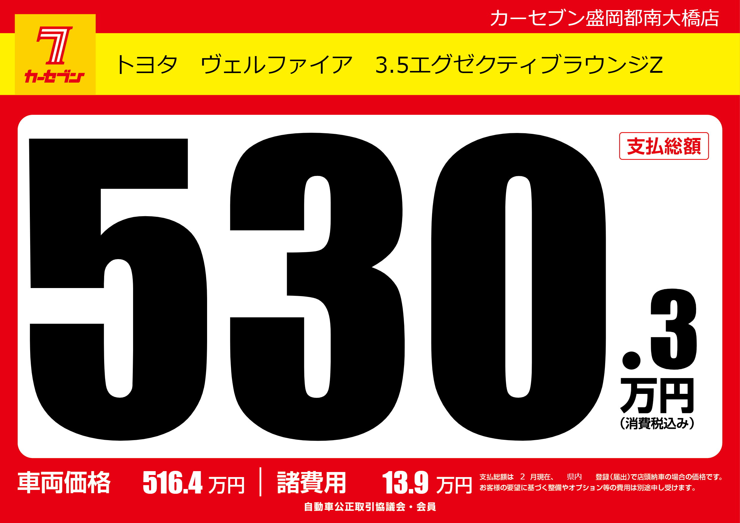 | 車名 | トヨタ ヴェルファイア 3.5エグゼクティブラウンジZ | グレード ミッション 排気量 |