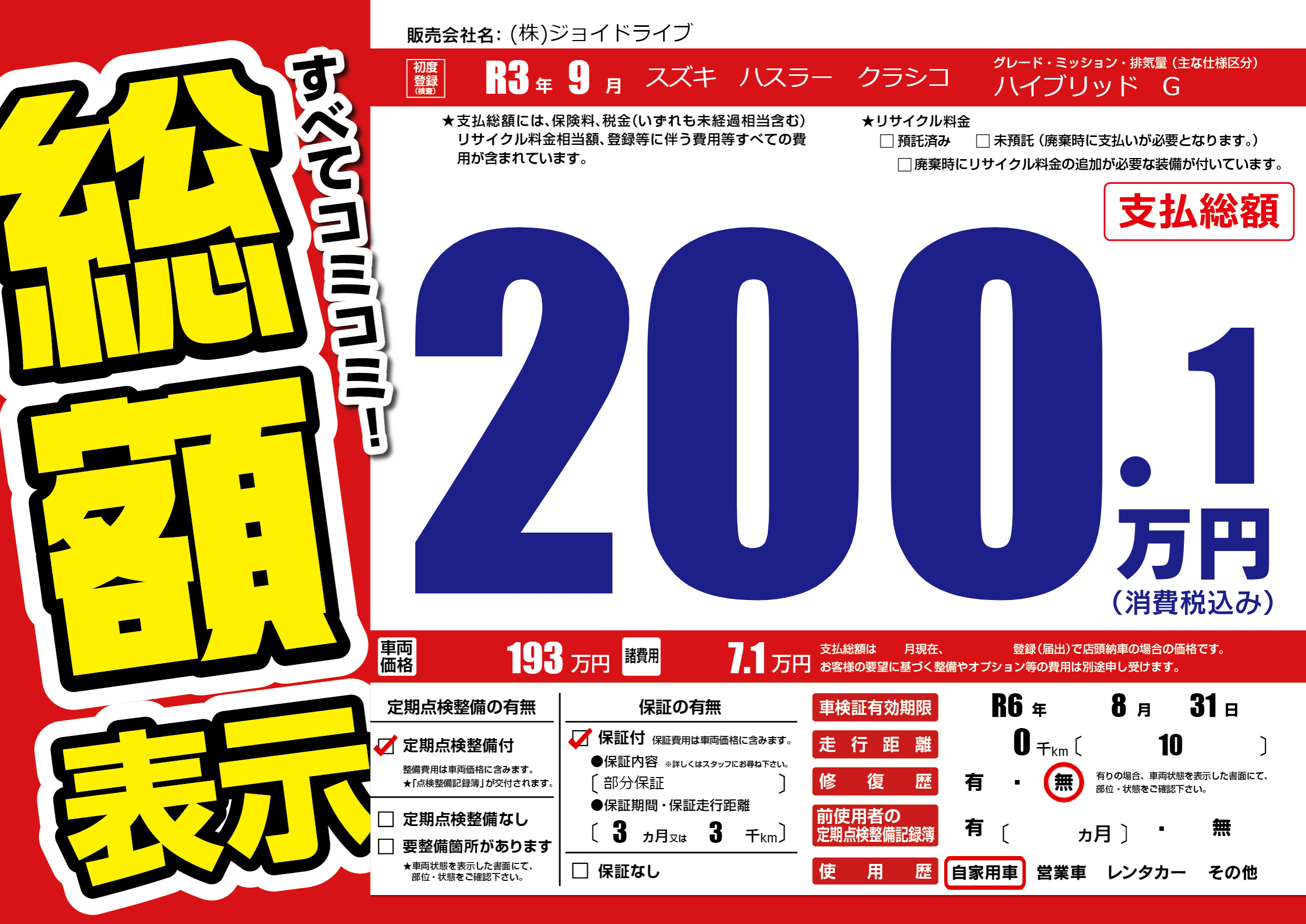 なし | 車検制限 | R6年8月31月 |