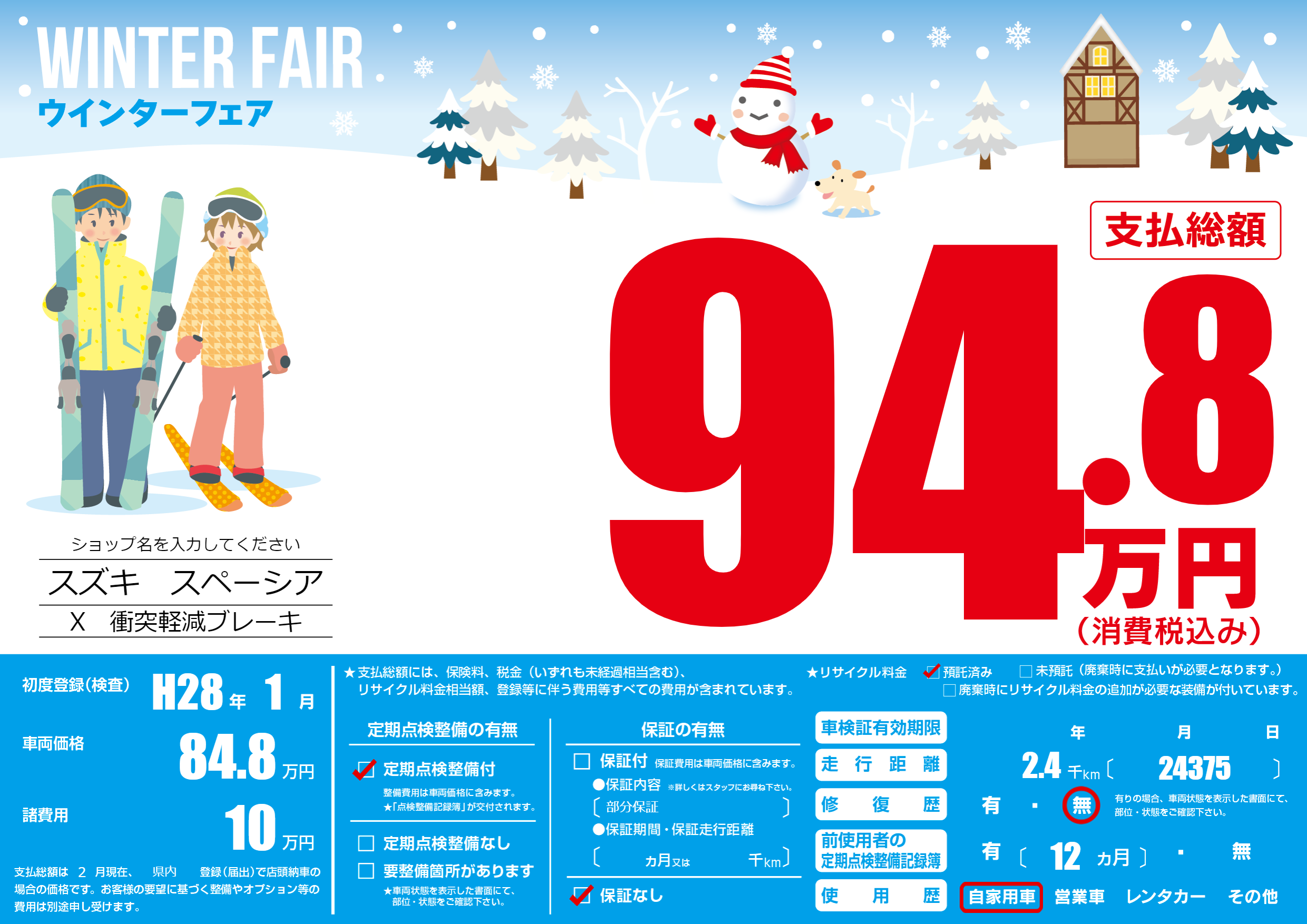 | 走行キロ | 0.2万km | 初年度登録 | H28年1月 |