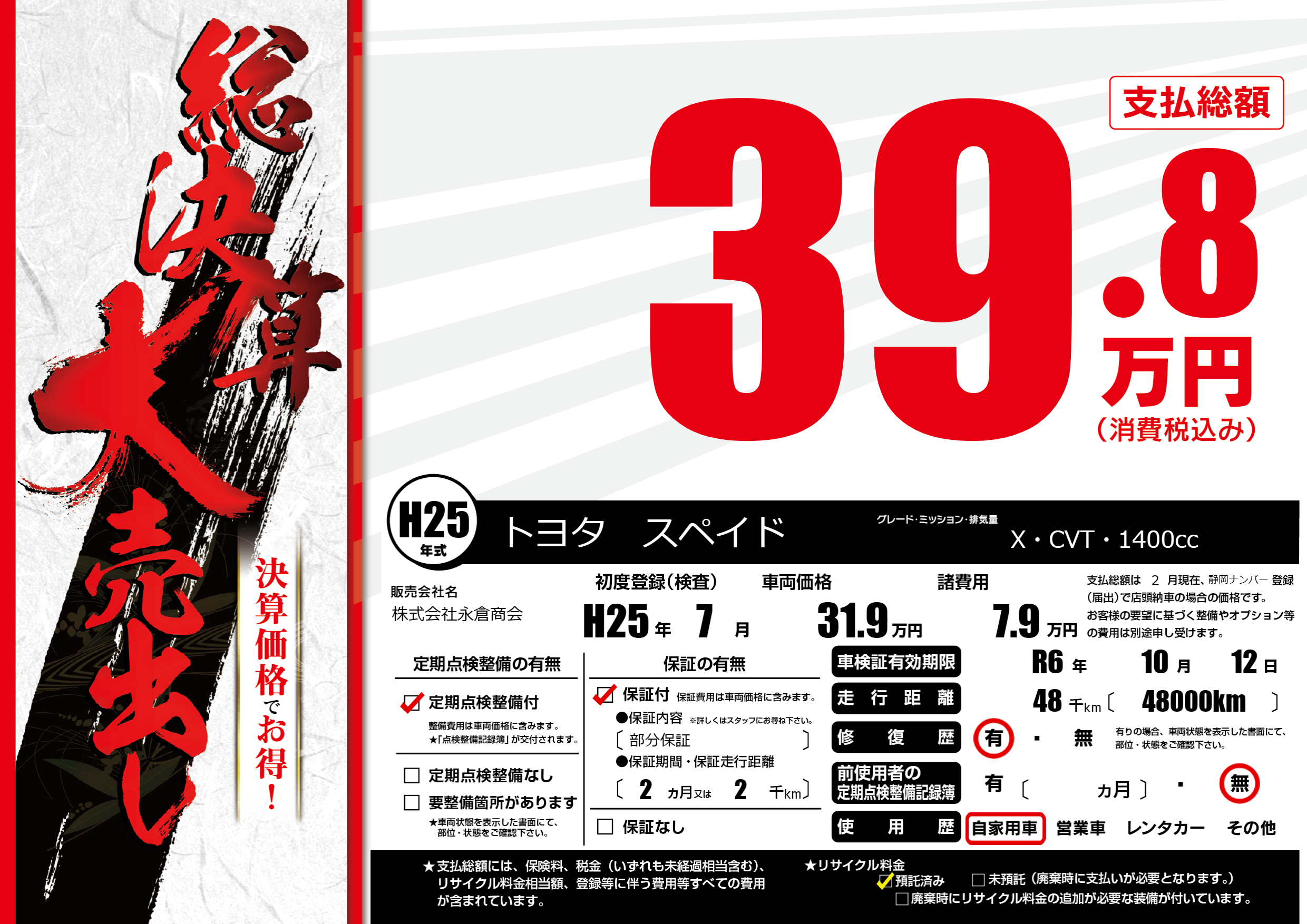 | 車検制限 | R6年 10月 12日 | ||