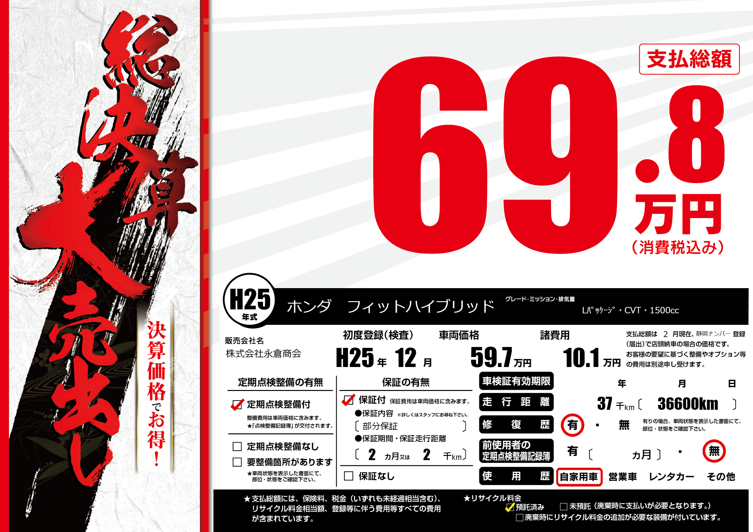 | 定期点検整備 | 定期点検整備あり | ||