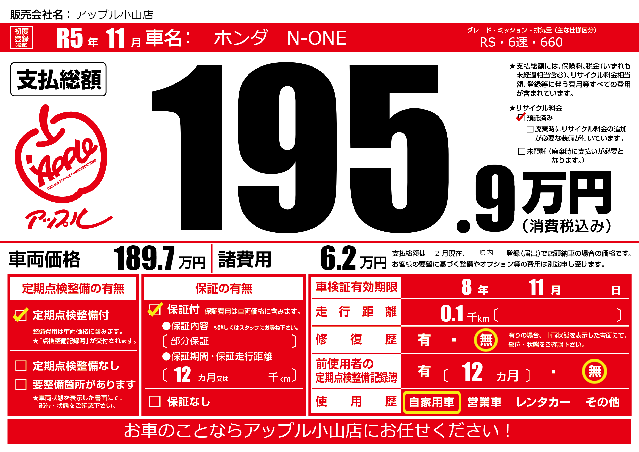 | 走行キロ | - | 初年度登録 | R5年11月 |