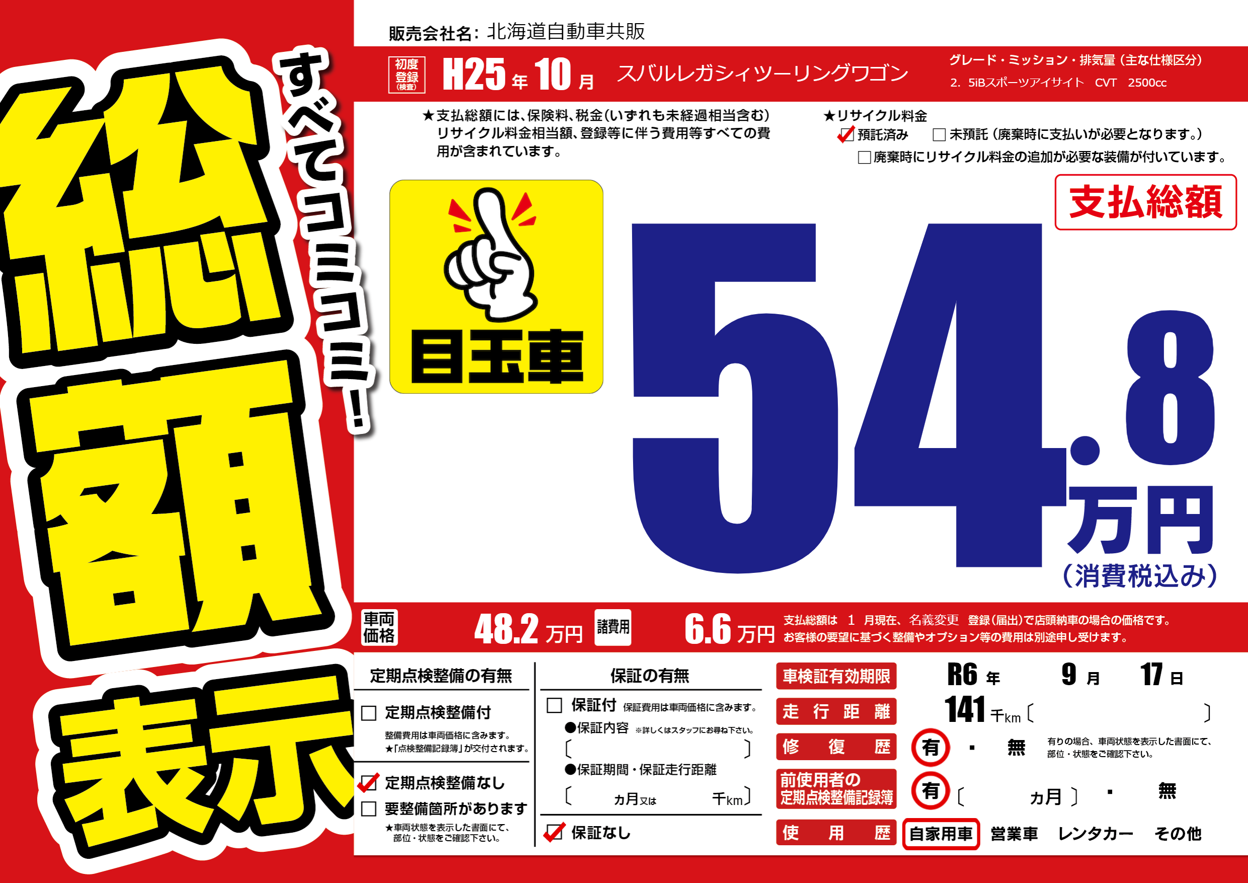 なし | 車検制限 | R6年9月17月 |