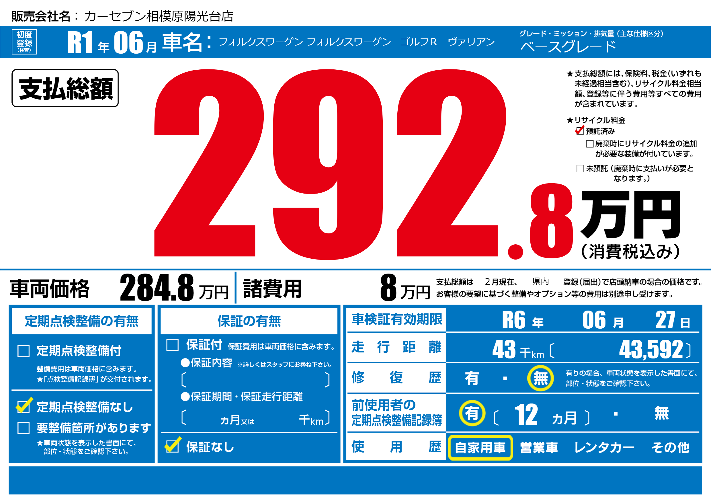 フォルクスワーゲン フォルクスワーゲン ゴルフR ヴァリアン