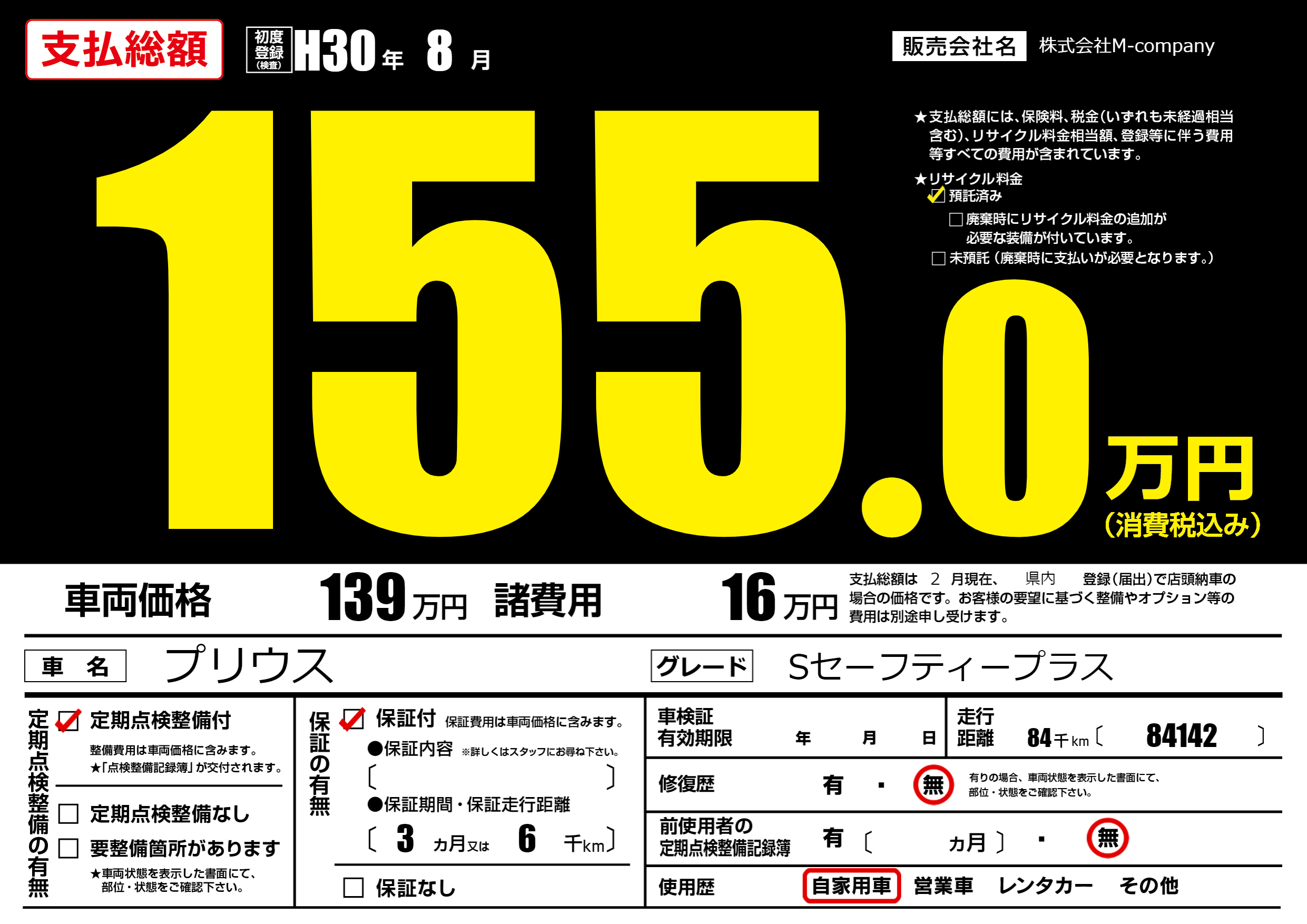 | 車名 | プリウス | グレード ミッション 排気量 |