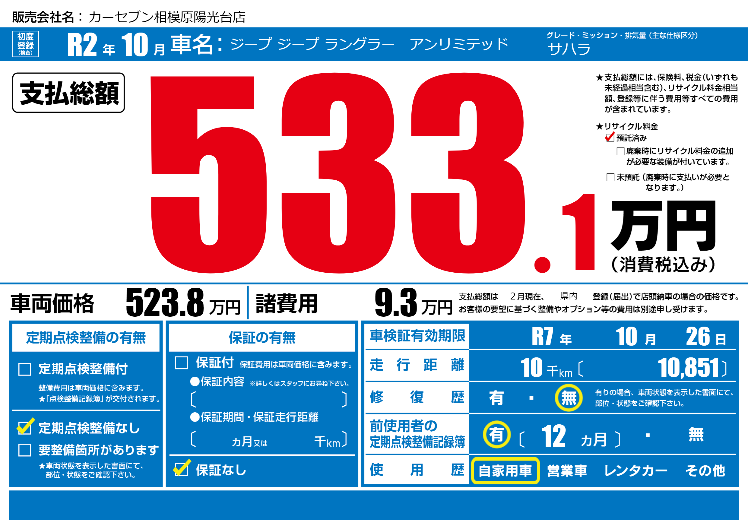 なし | 車検制限 | R7年10月26月 |