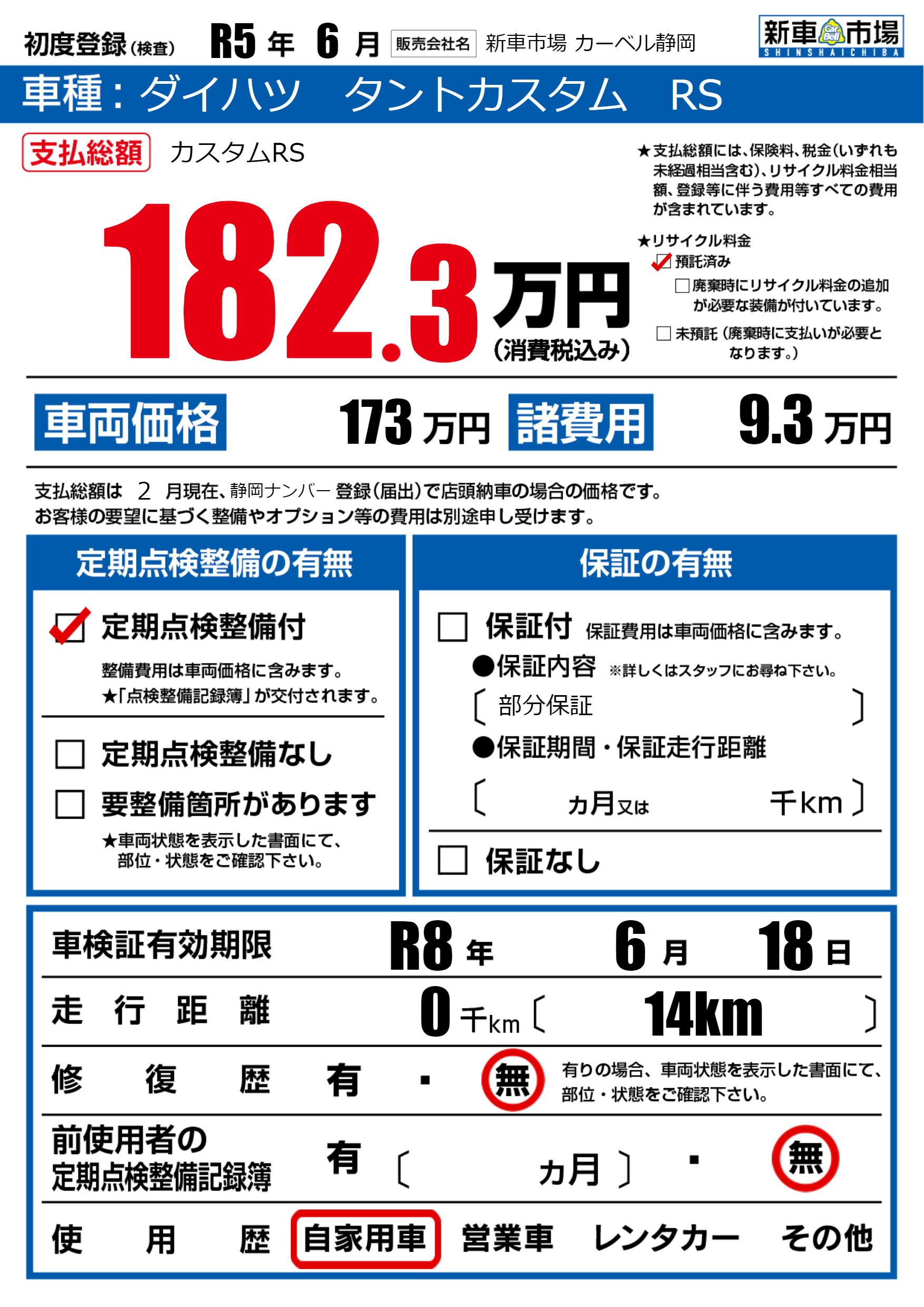 | 走行キロ | - | 初年度登録 | R5年6月 |