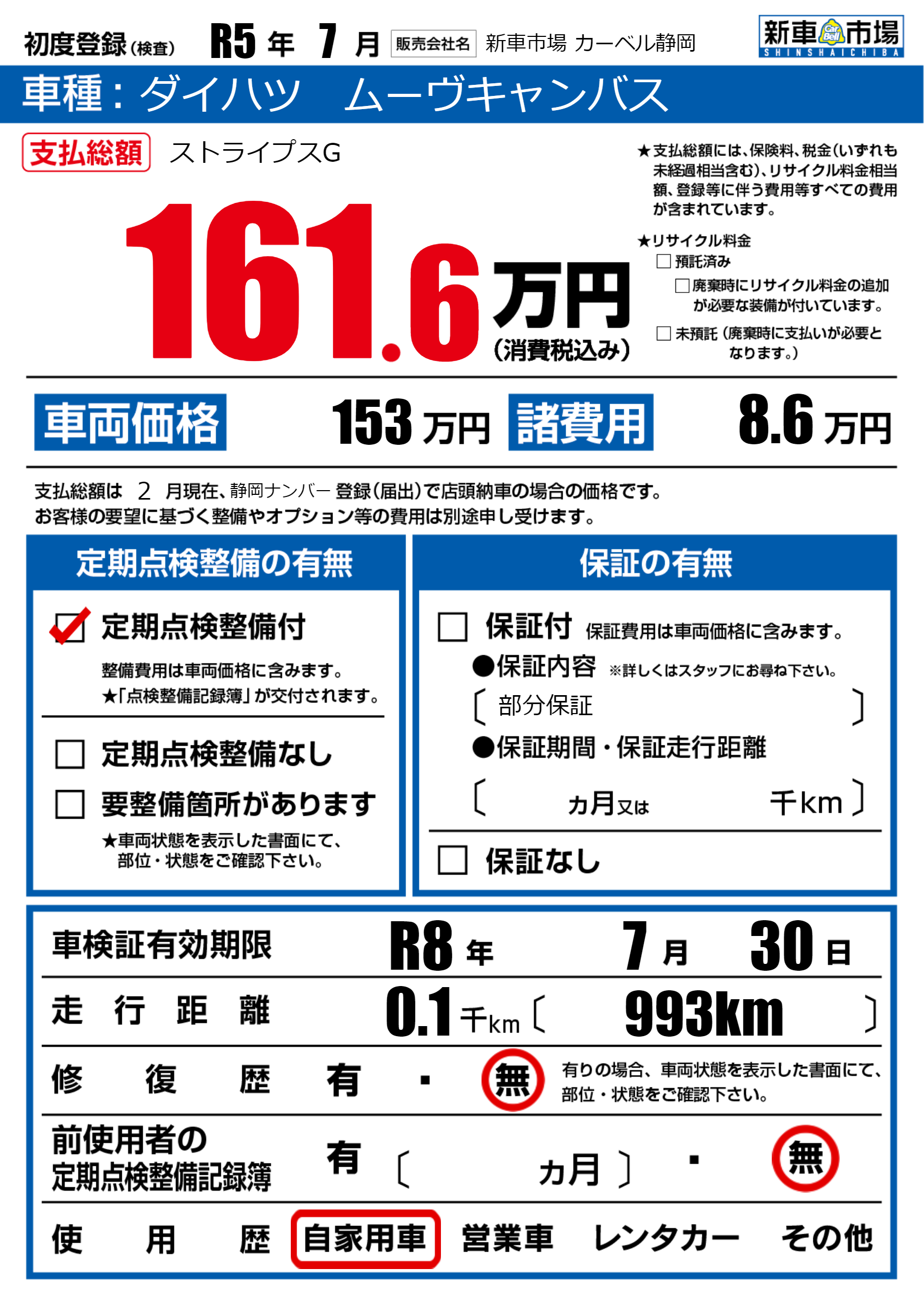 | 走行キロ | - | 初年度登録 | R5年7月 |