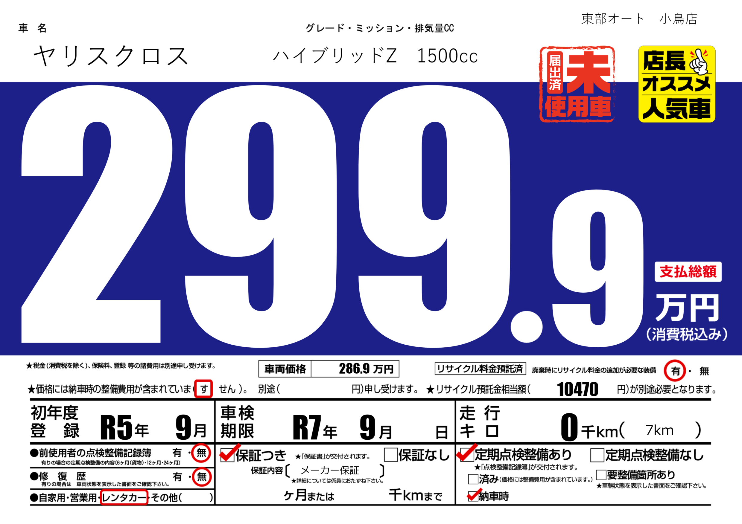 | 車名 | ヤリスクロス | グレード ミッション 排気量 |