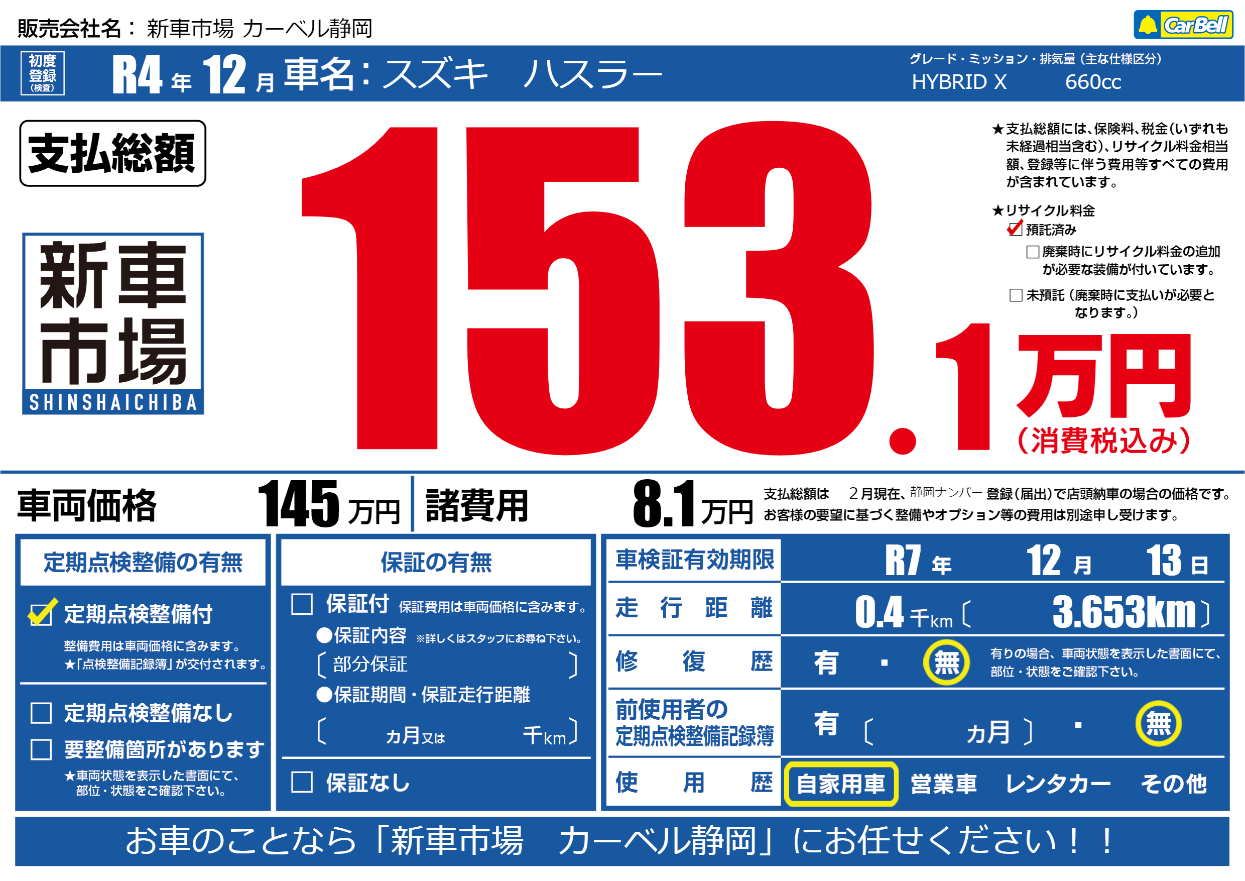 | 車検制限 | R7年 12月 13日 | ||