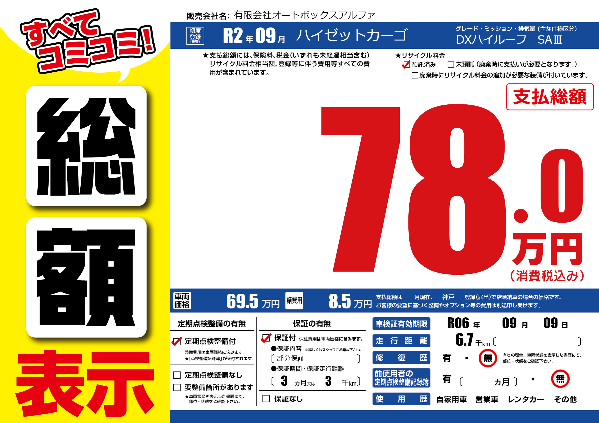 | 車名 | ハイゼットカーゴ | グレード ミッション 排気量 |