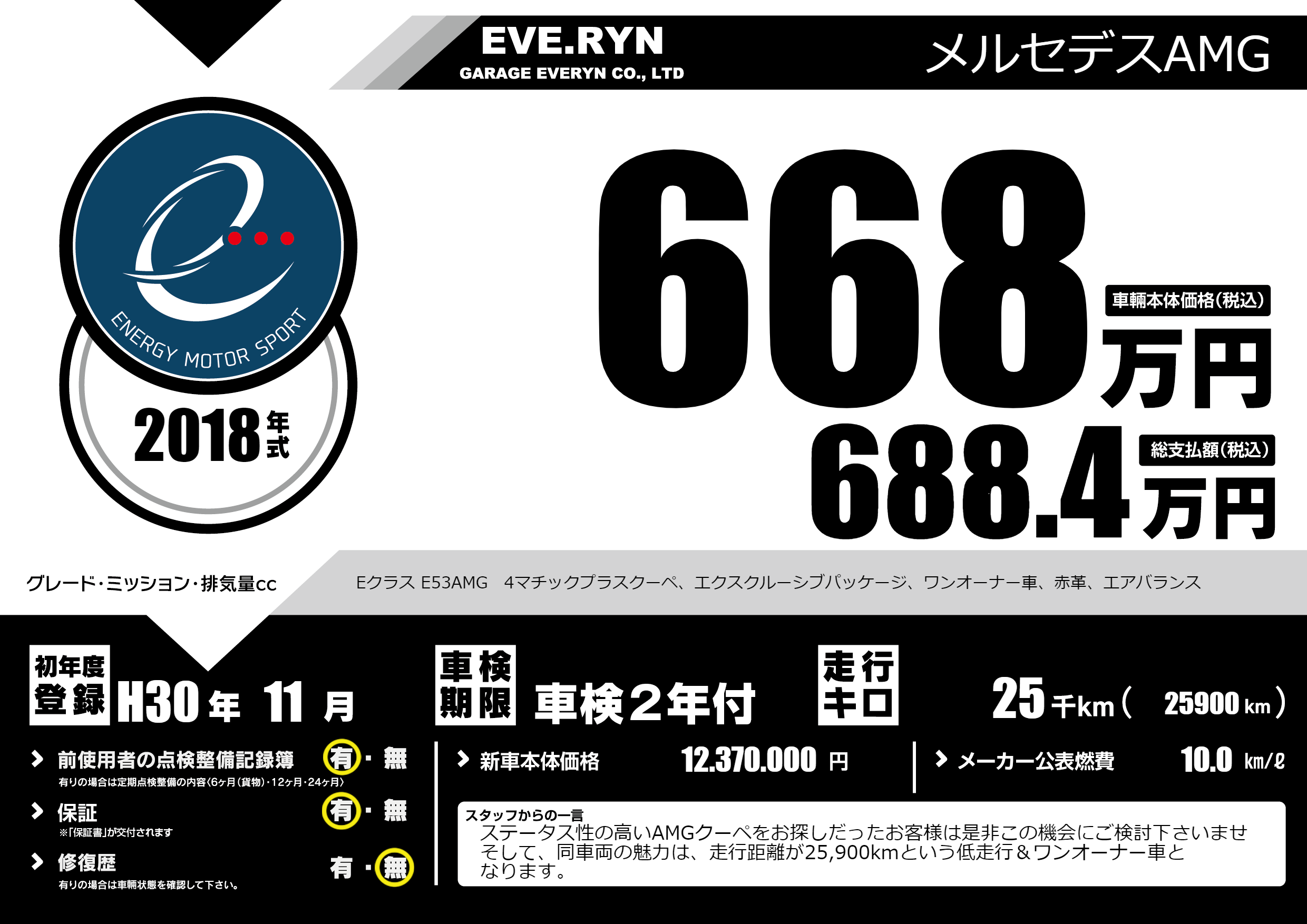 Eクラス E53AMG 4マチックプラスクーペ、エクスクルーシブパッケージ、ワンオーナー車、赤革、エアバランス |