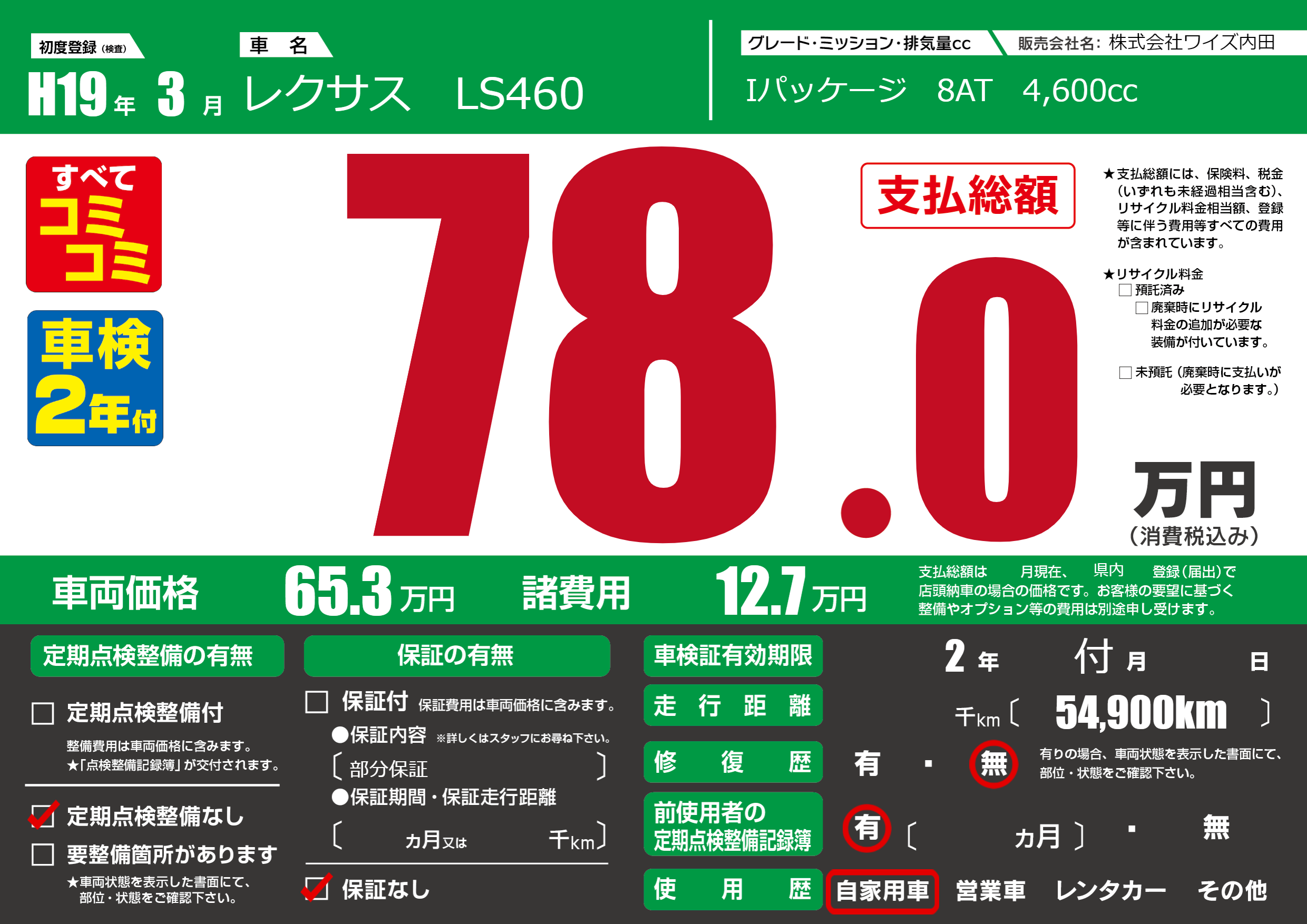 | 定期点検整備 | 定期点検整備なし | ||