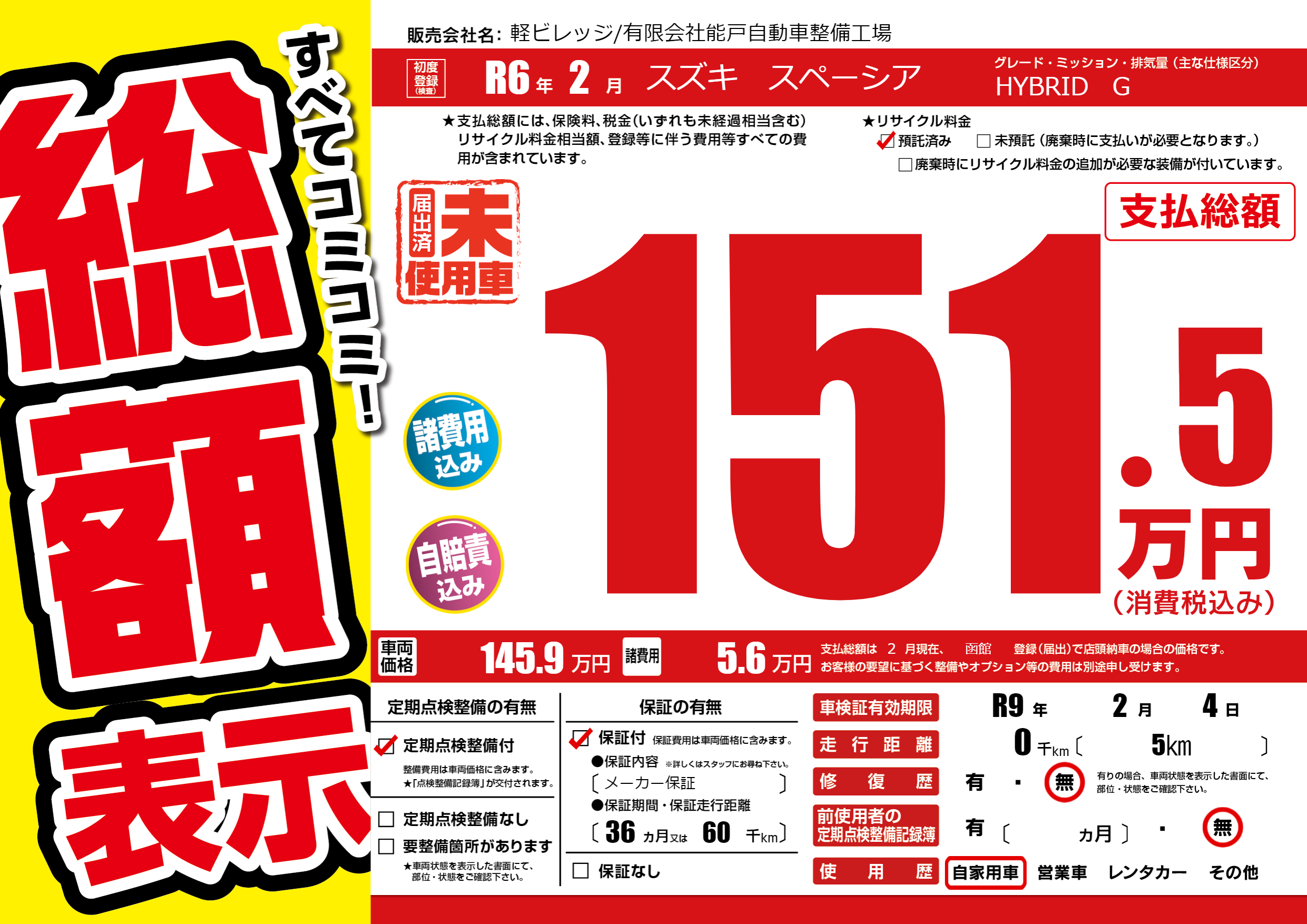 なし | 車検制限 | R9年2月4月 |