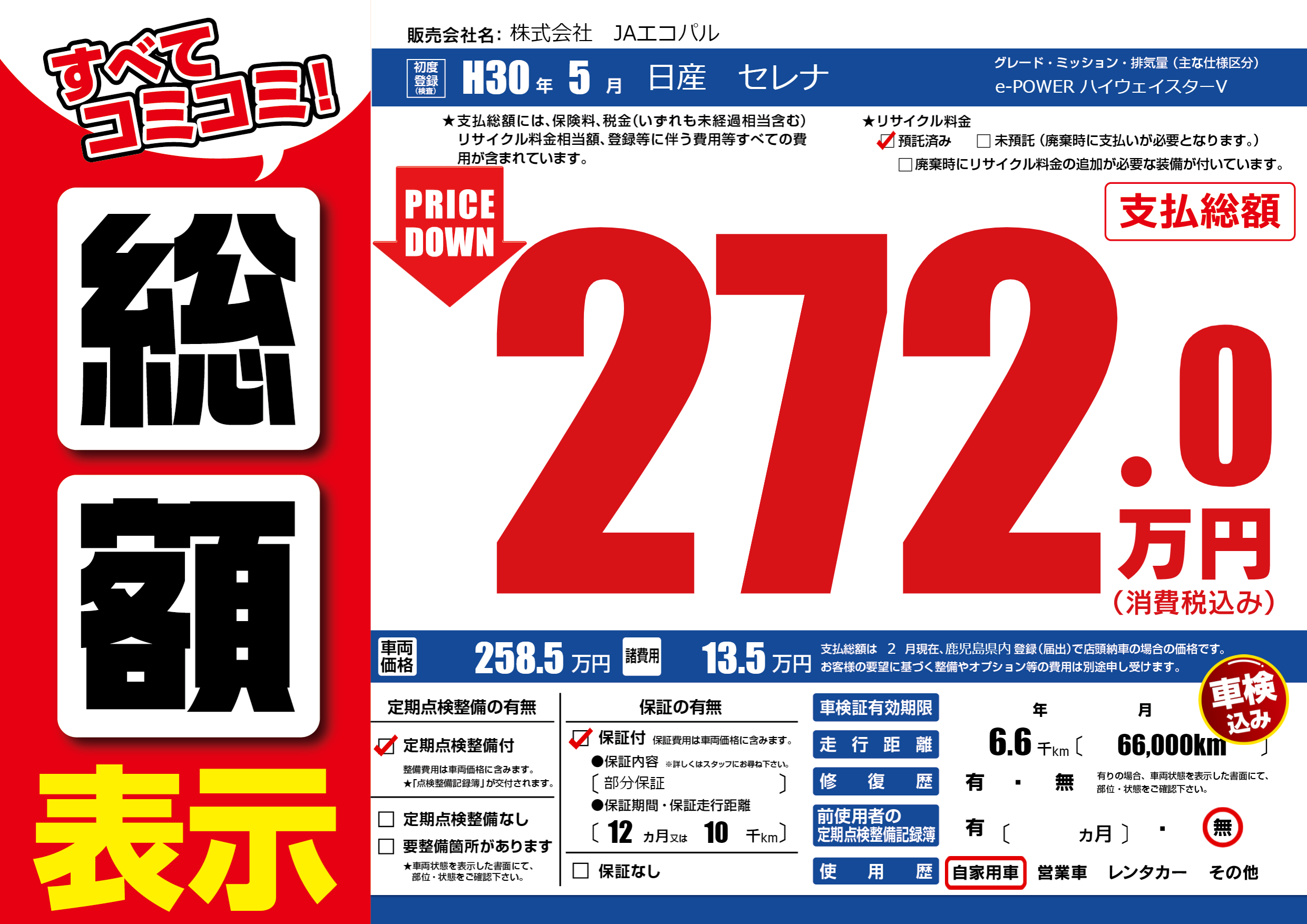 | 定期点検整備 | 定期点検整備あり | ||