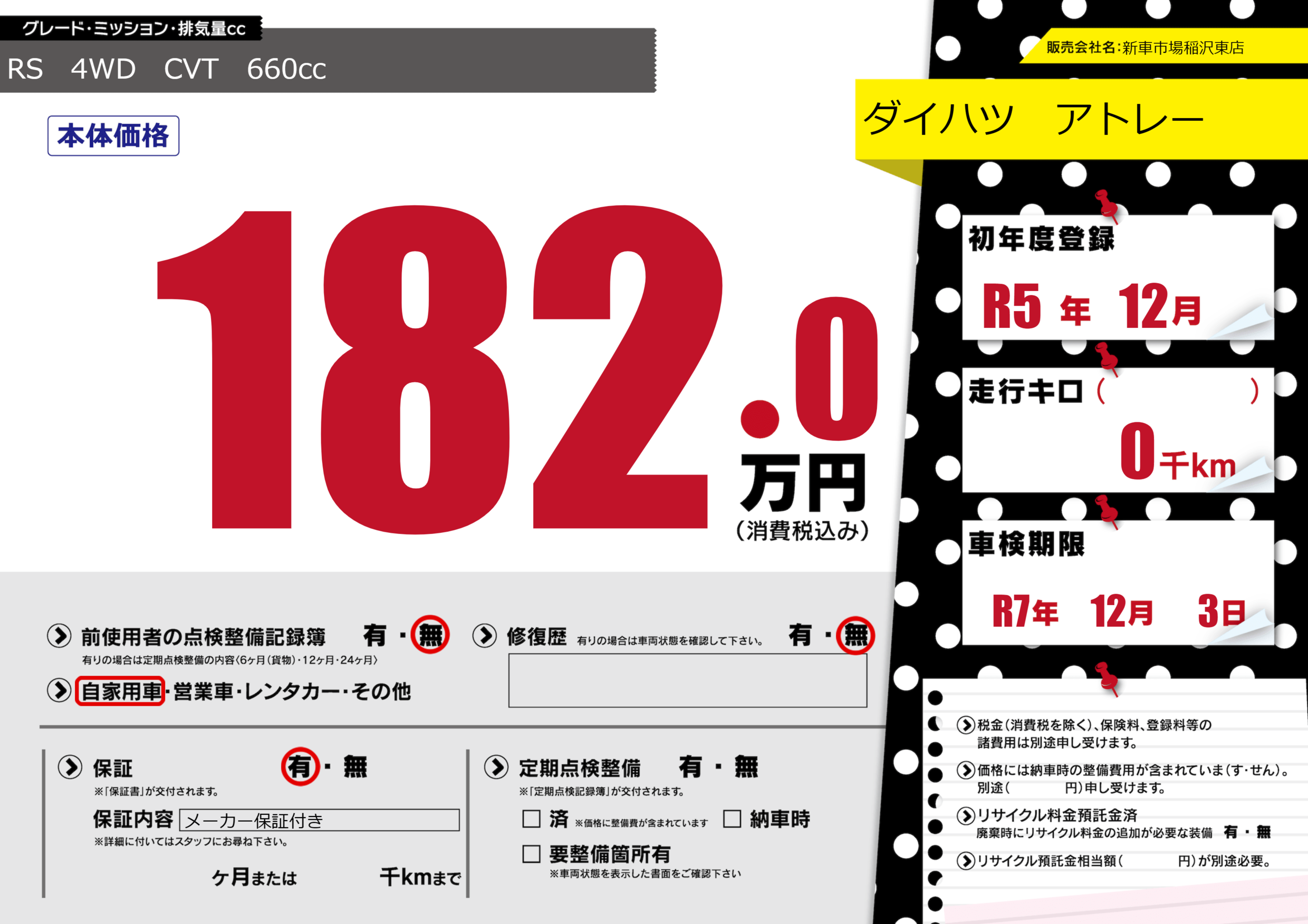| 走行キロ | - | 初年度登録 | R5年12月 |
