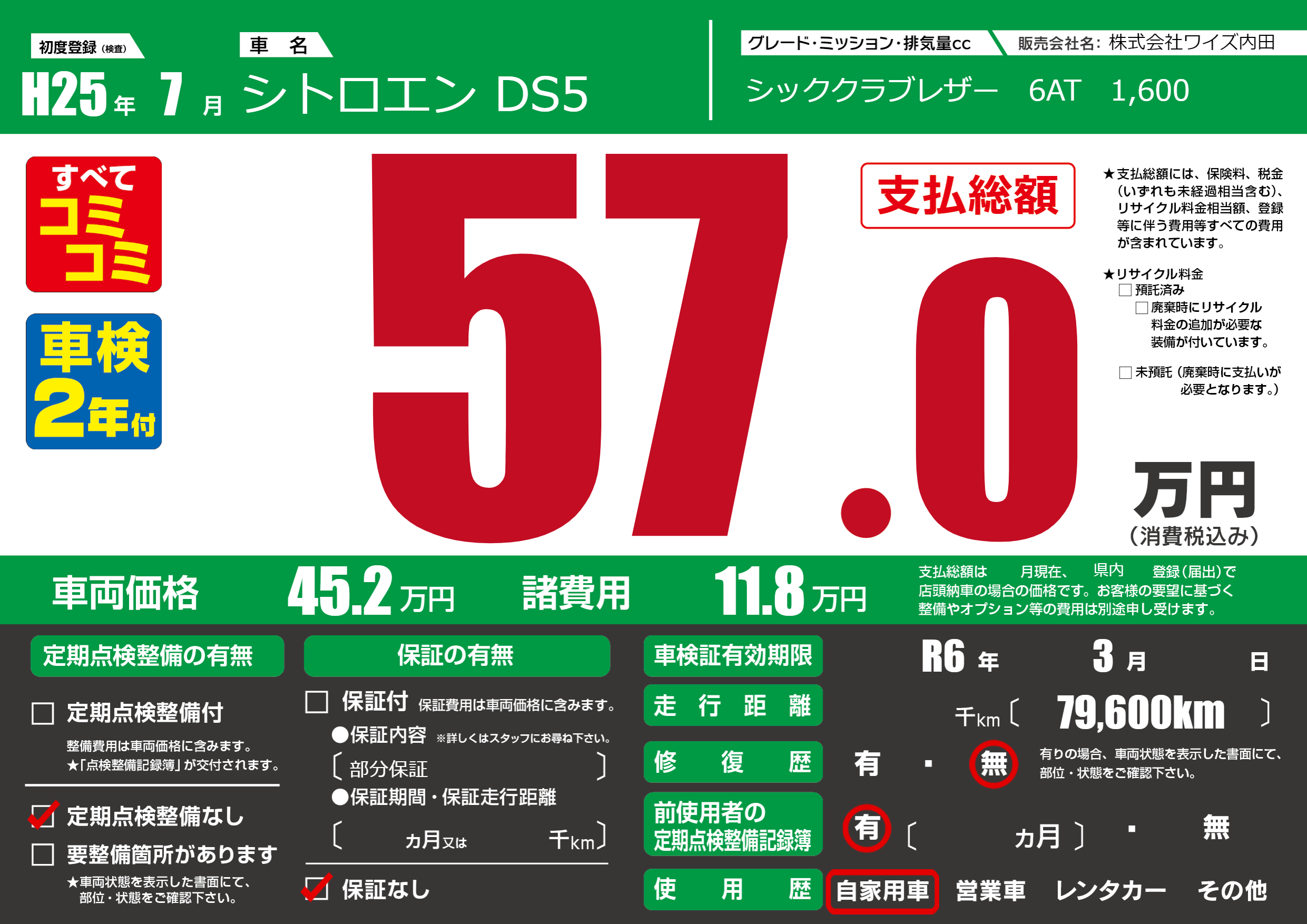 | 車検制限 | R6年 3月 - 日 | ||