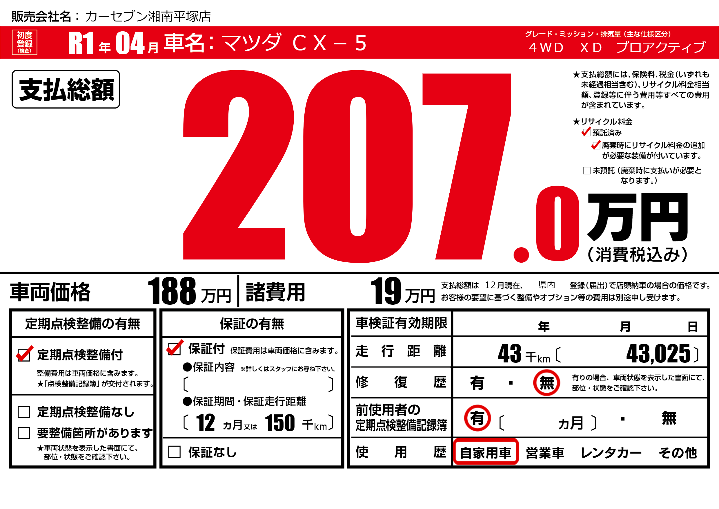 | 定期点検整備 | 定期点検整備あり | ||