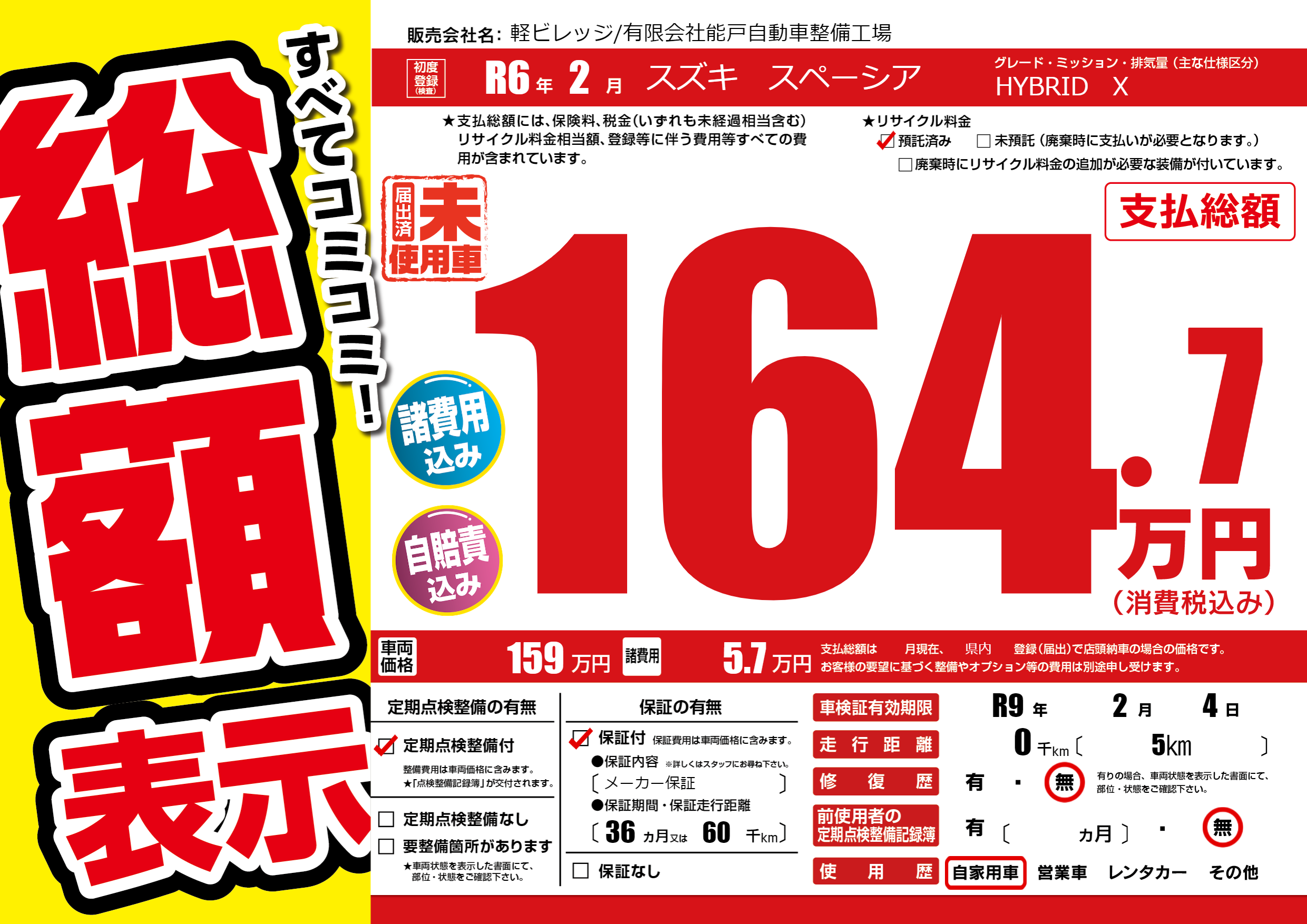 なし | 車検制限 | R9年2月4月 |