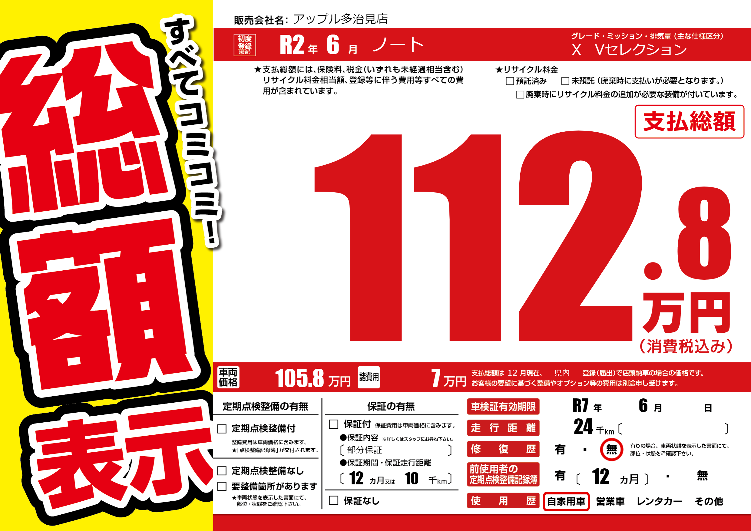 保証なし 保証内容(部分保証) 12ヶ月または(10)千kmまで |