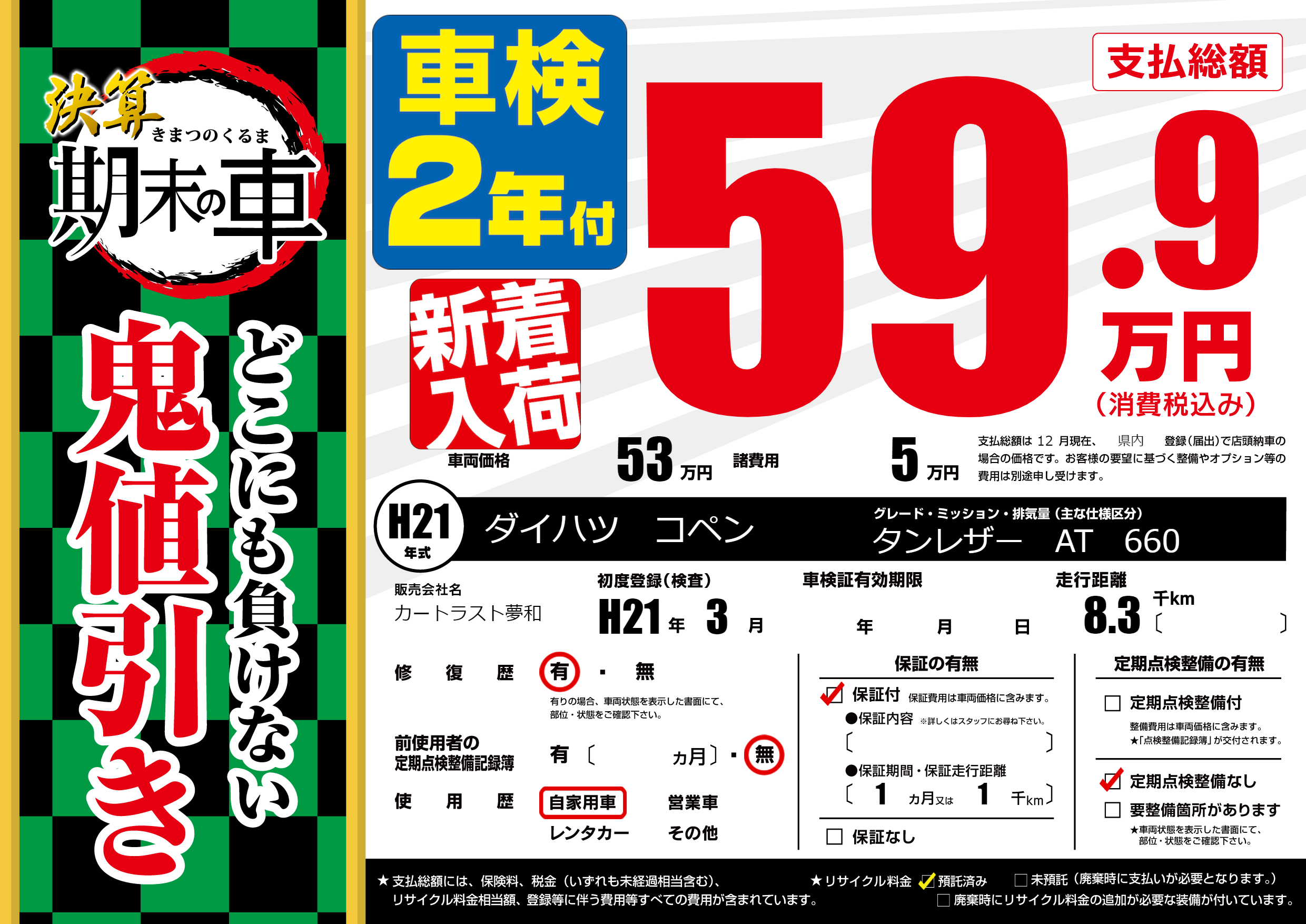 | 車名 | ダイハツ コペン | グレード ミッション 排気量 |