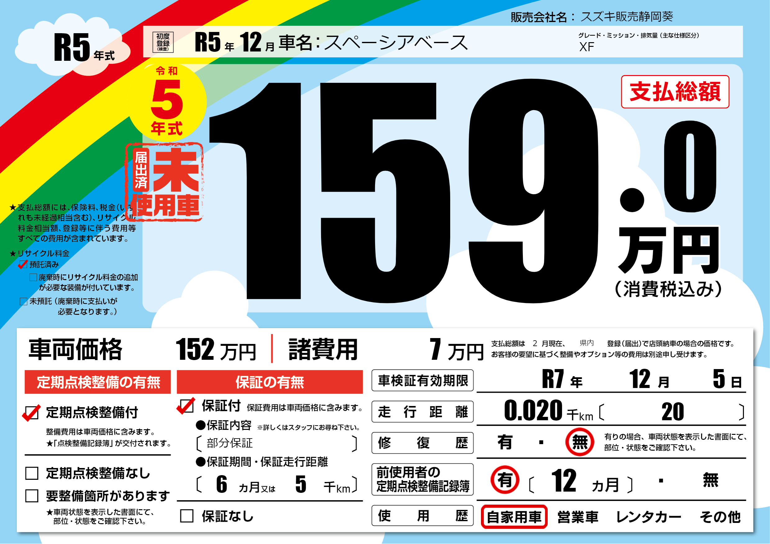 | 車検制限 | R7年 12月 5日 | ||