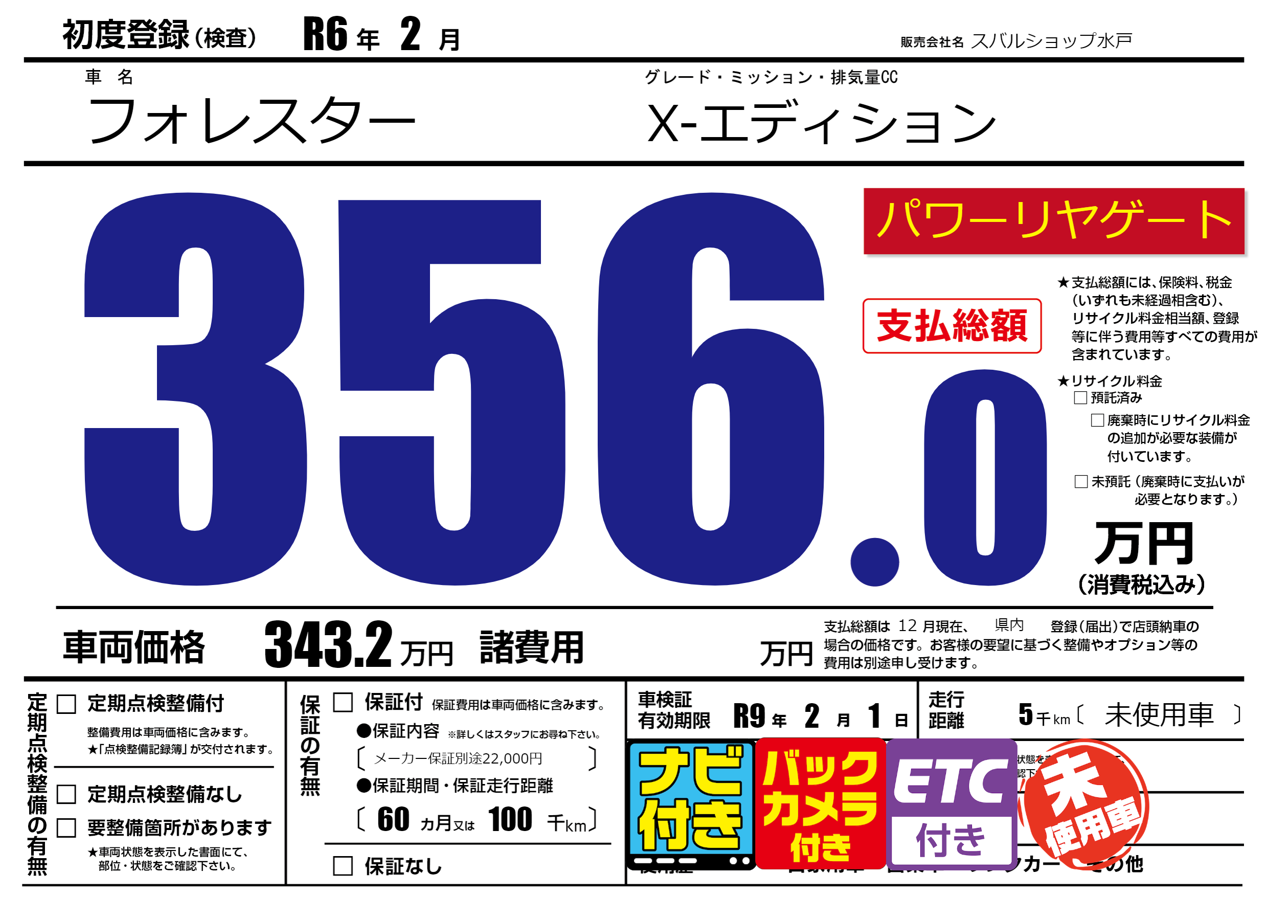 なし | 車検制限 | R9年2月1月 |