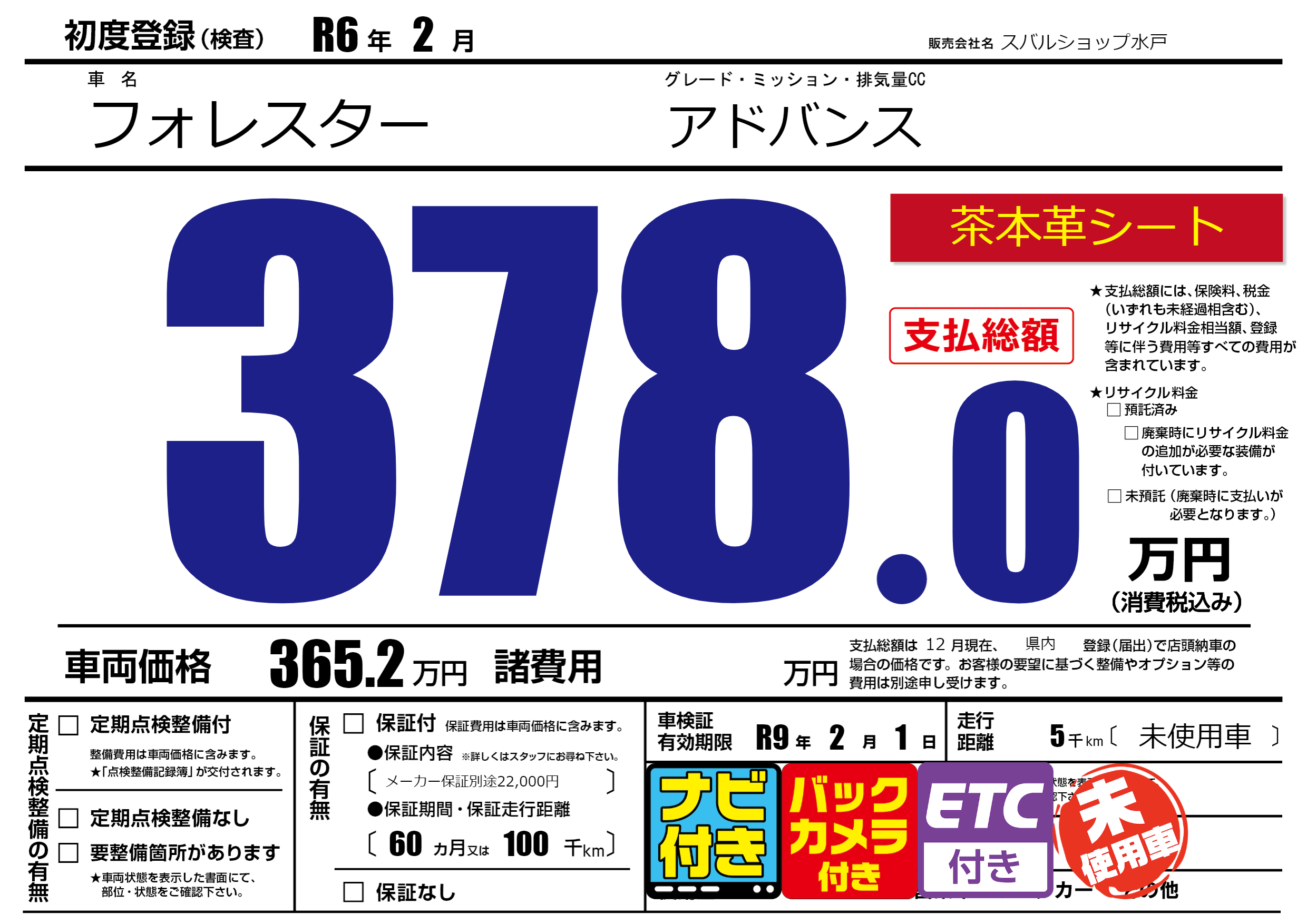| 車名 | フォレスター | グレード ミッション 排気量 |