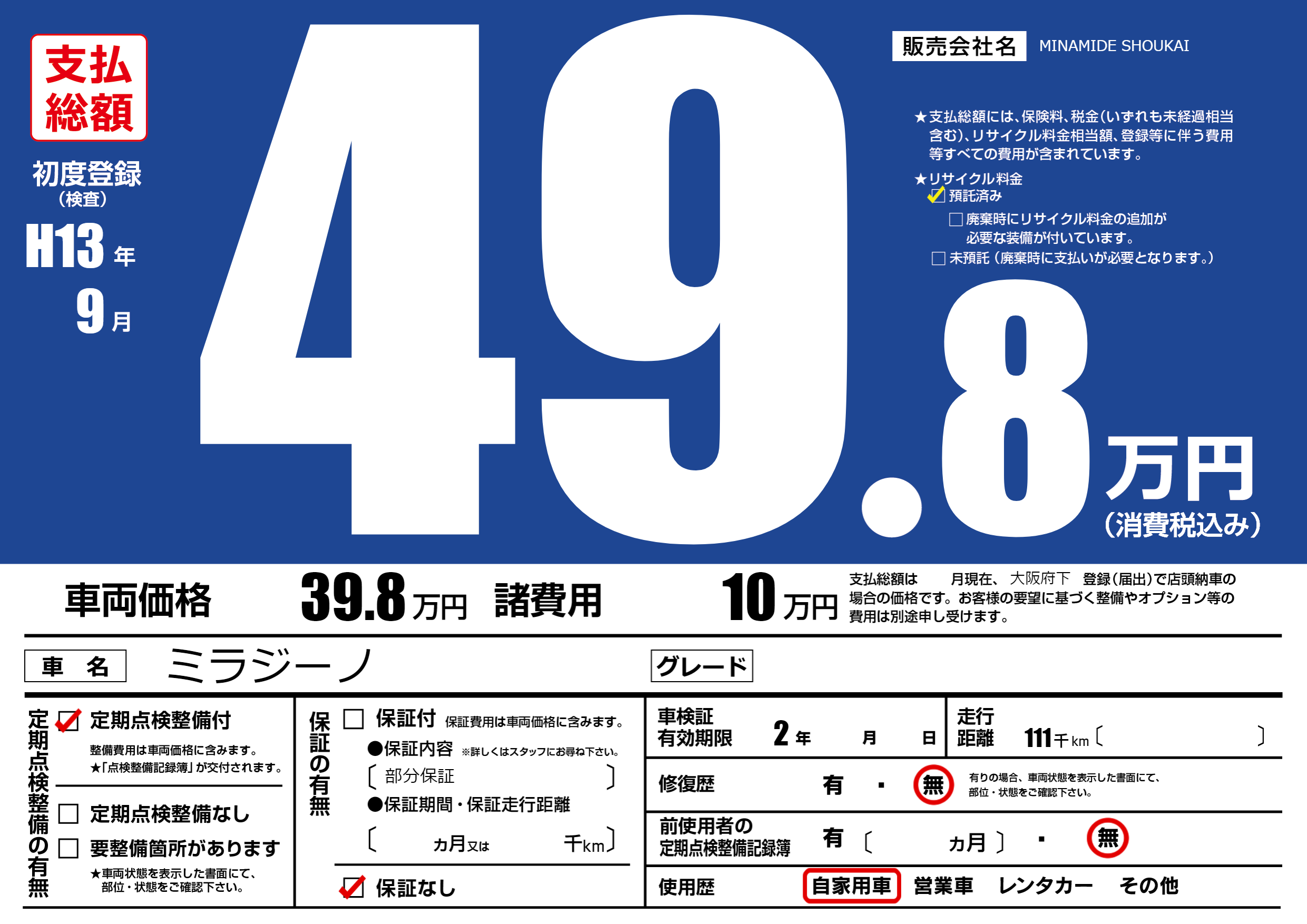 | 定期点検整備 | 定期点検整備あり | ||