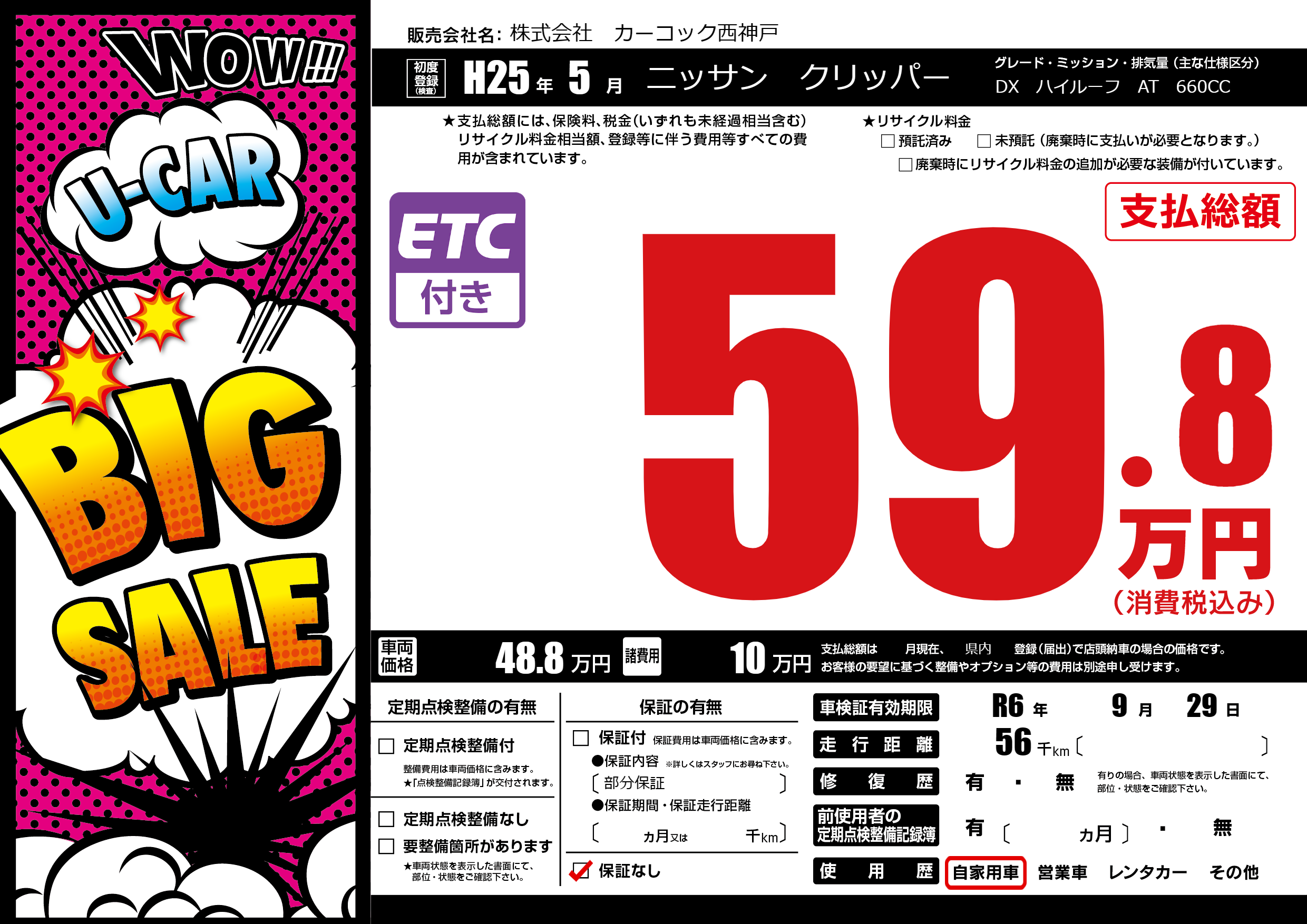 | 車名 | ニッサン クリッパー | グレード ミッション 排気量 |