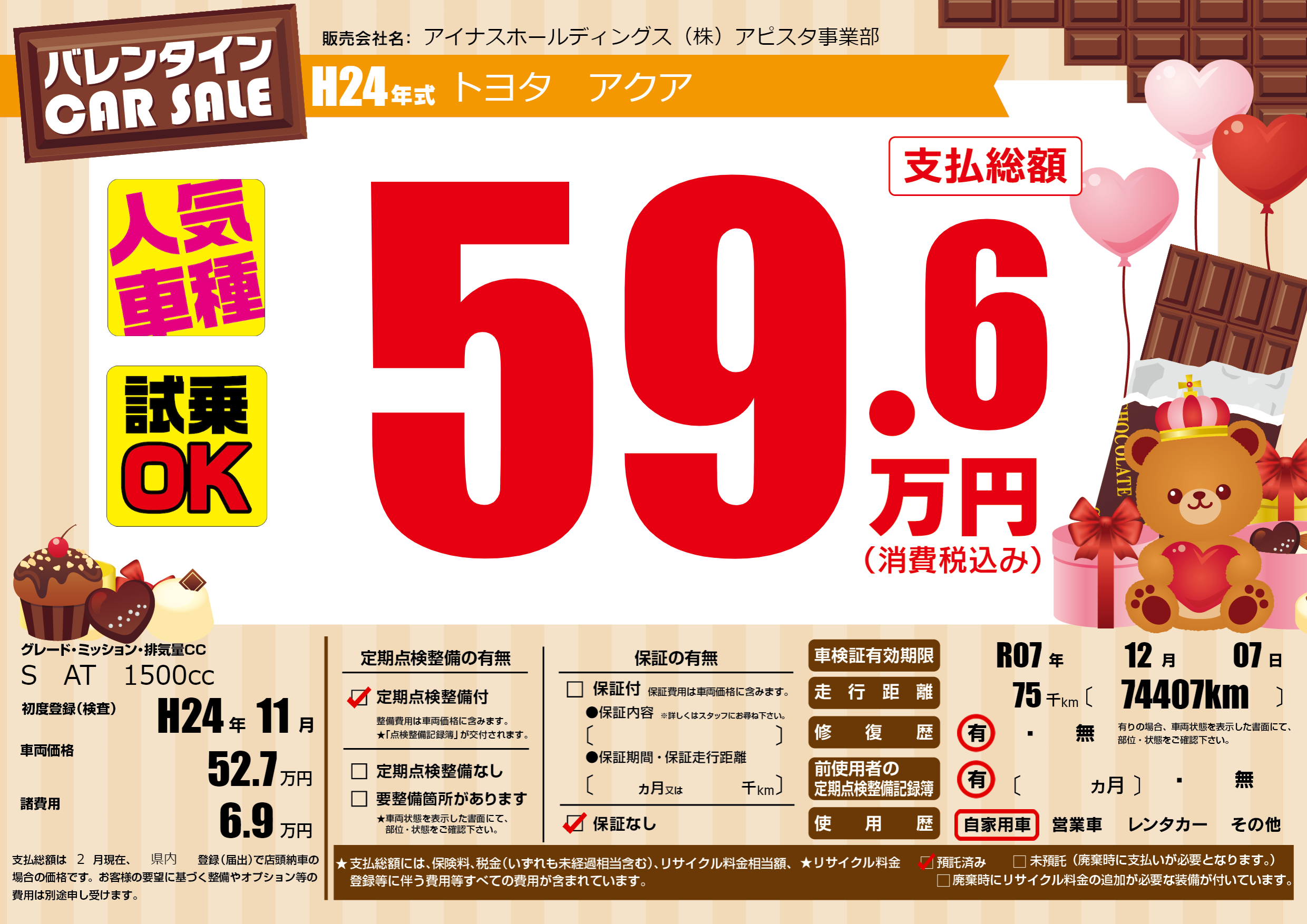 | 定期点検整備 | 定期点検整備あり | ||