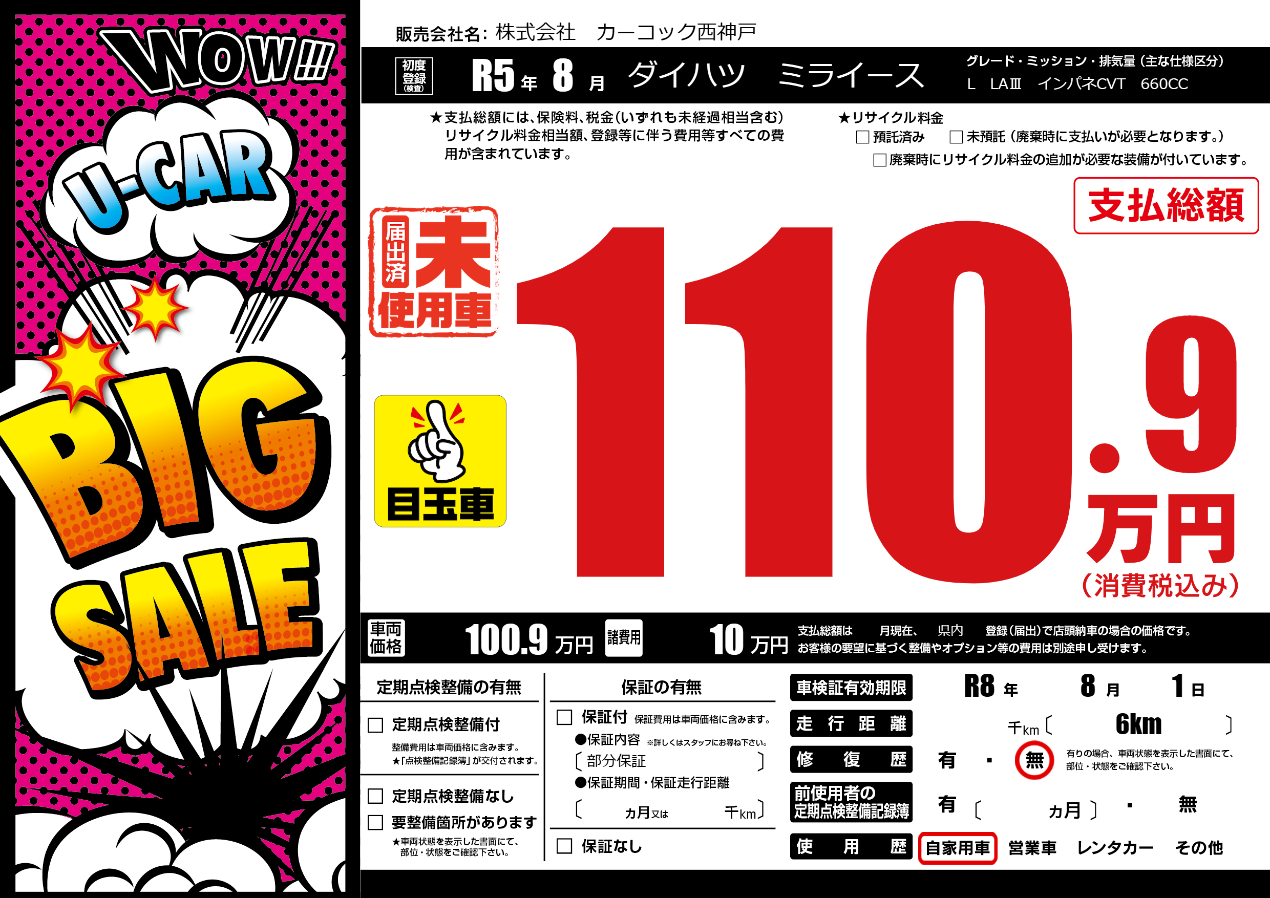 | 走行キロ | - | 初年度登録 | R5年8月 |