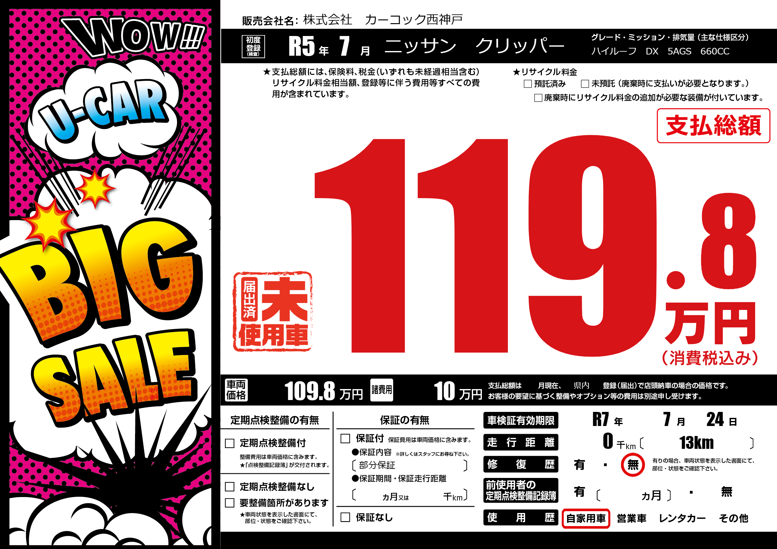 | 走行キロ | - | 初年度登録 | R5年7月 |