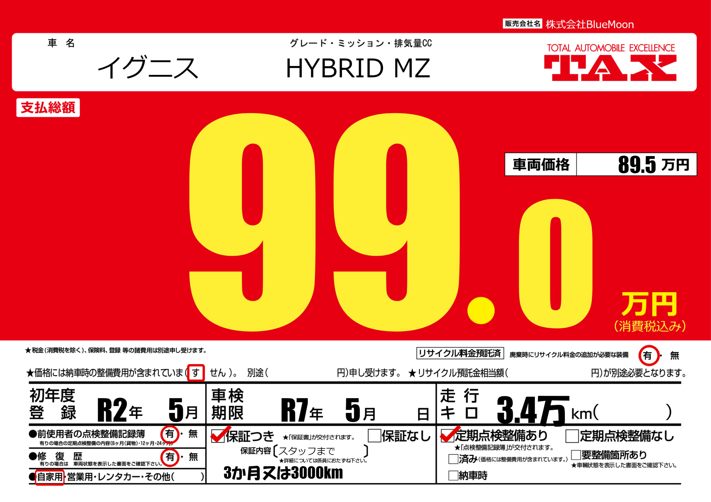 | 車名 | イグニス | グレード ミッション 排気量 |