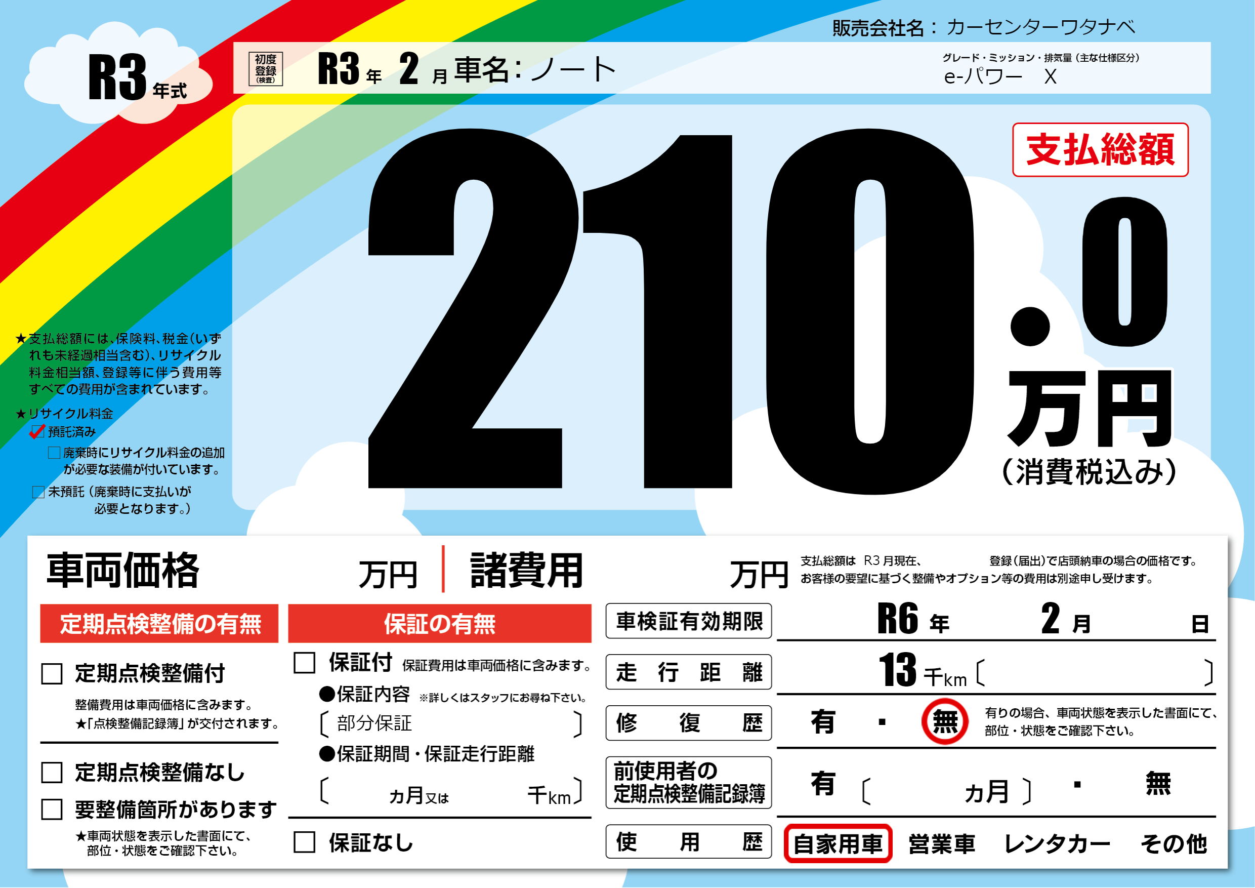 | 走行キロ | 1.3万km | 初年度登録 | R3年2月 |