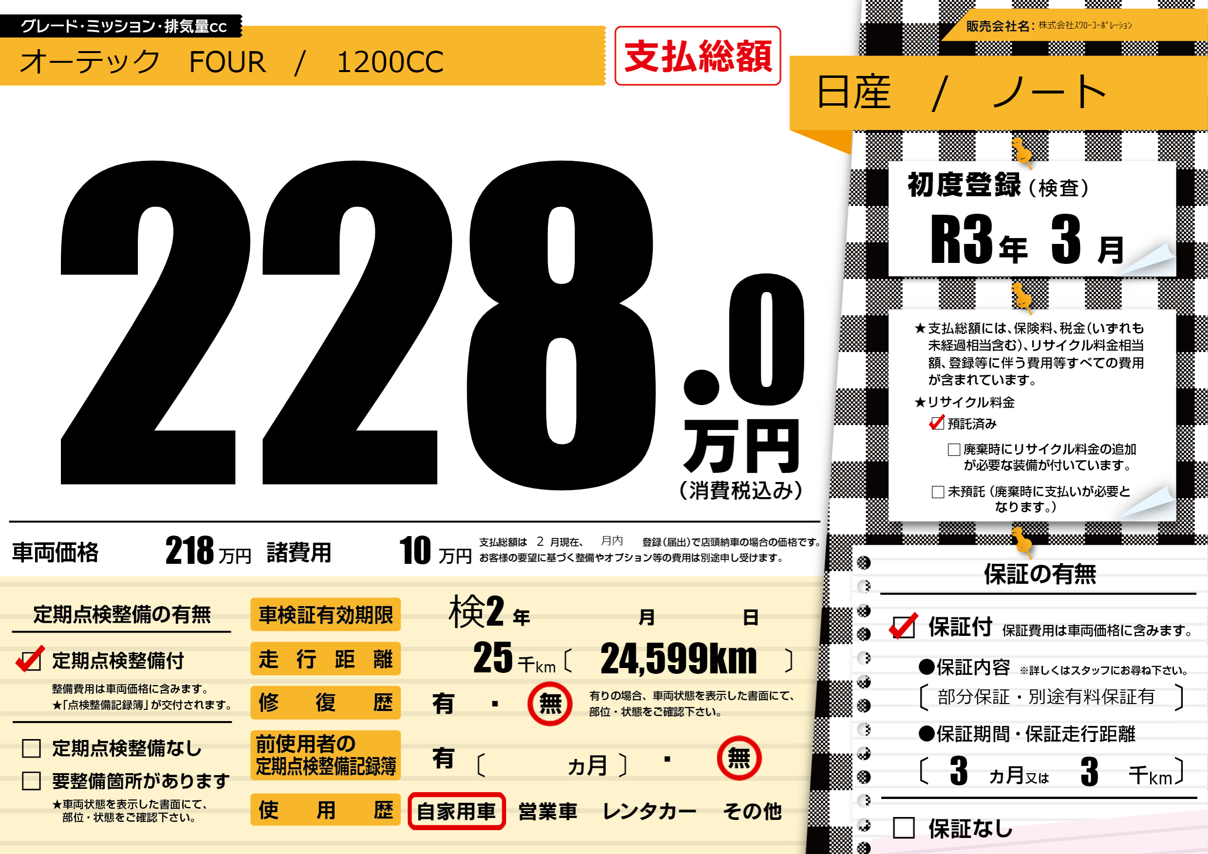 保証付き 保証内容(部分保証・別途有料保証有) 3ヶ月または3千km |
