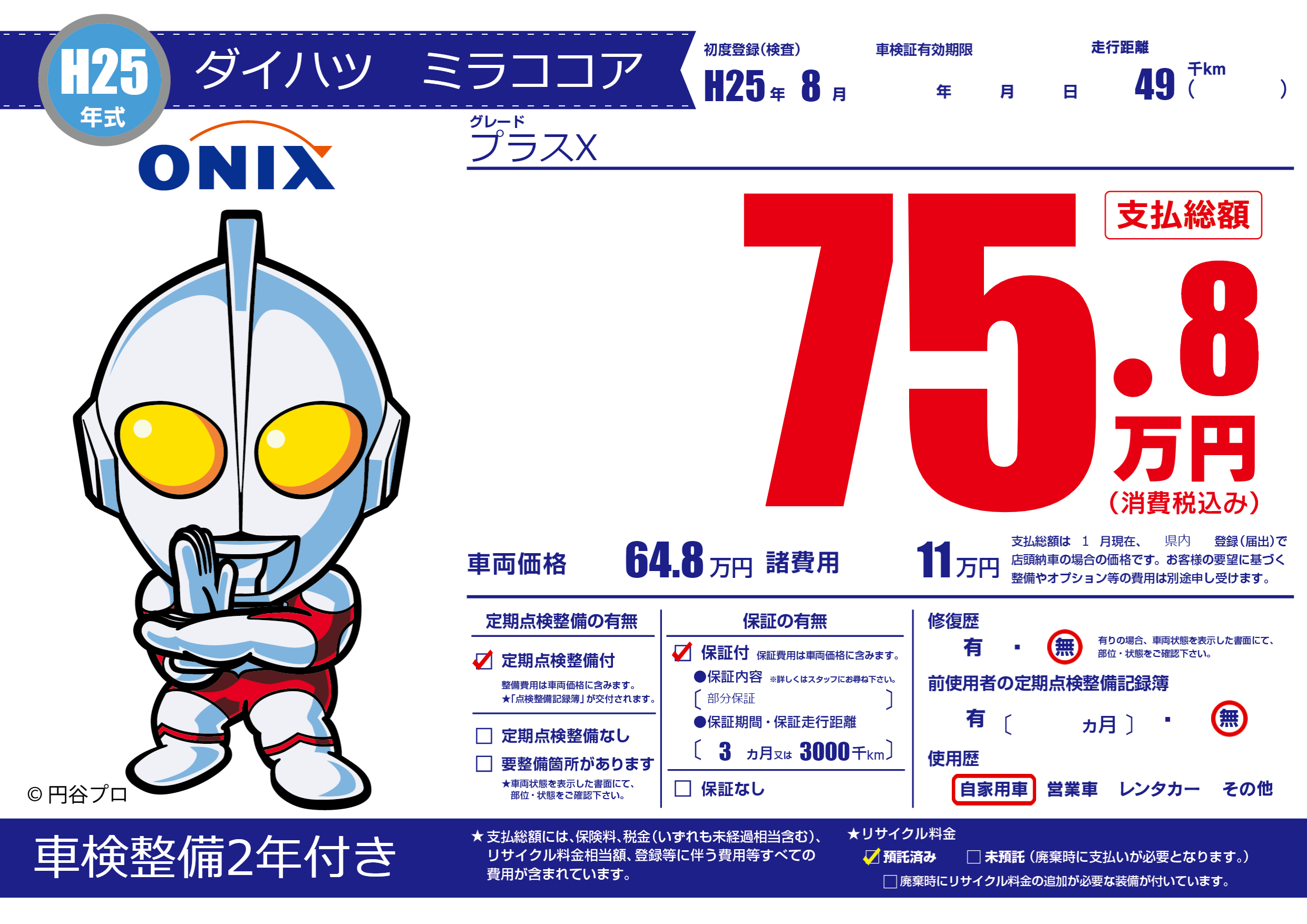 | 走行キロ | 4.9万km | 初年度登録 | H25年8月 |