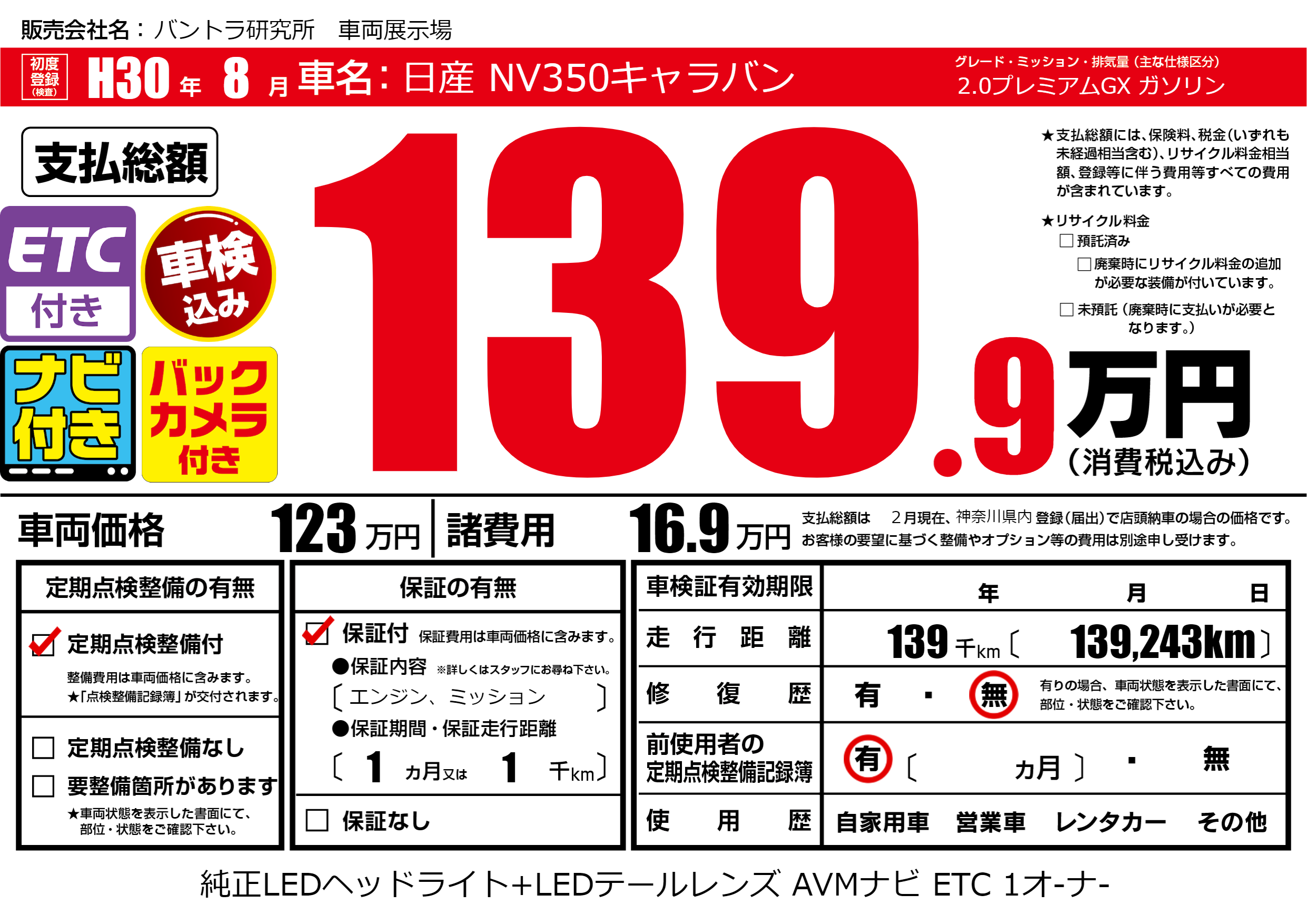 | 走行キロ | 13.9万km | ||
