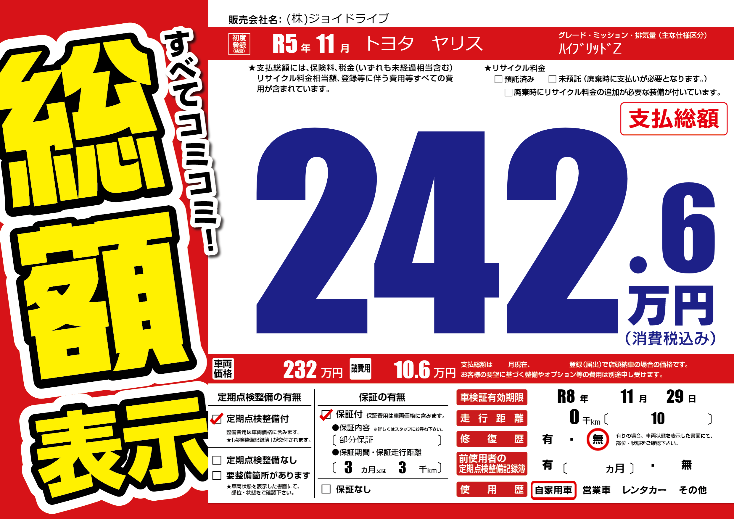 なし | 車検制限 | R8年11月29月 |