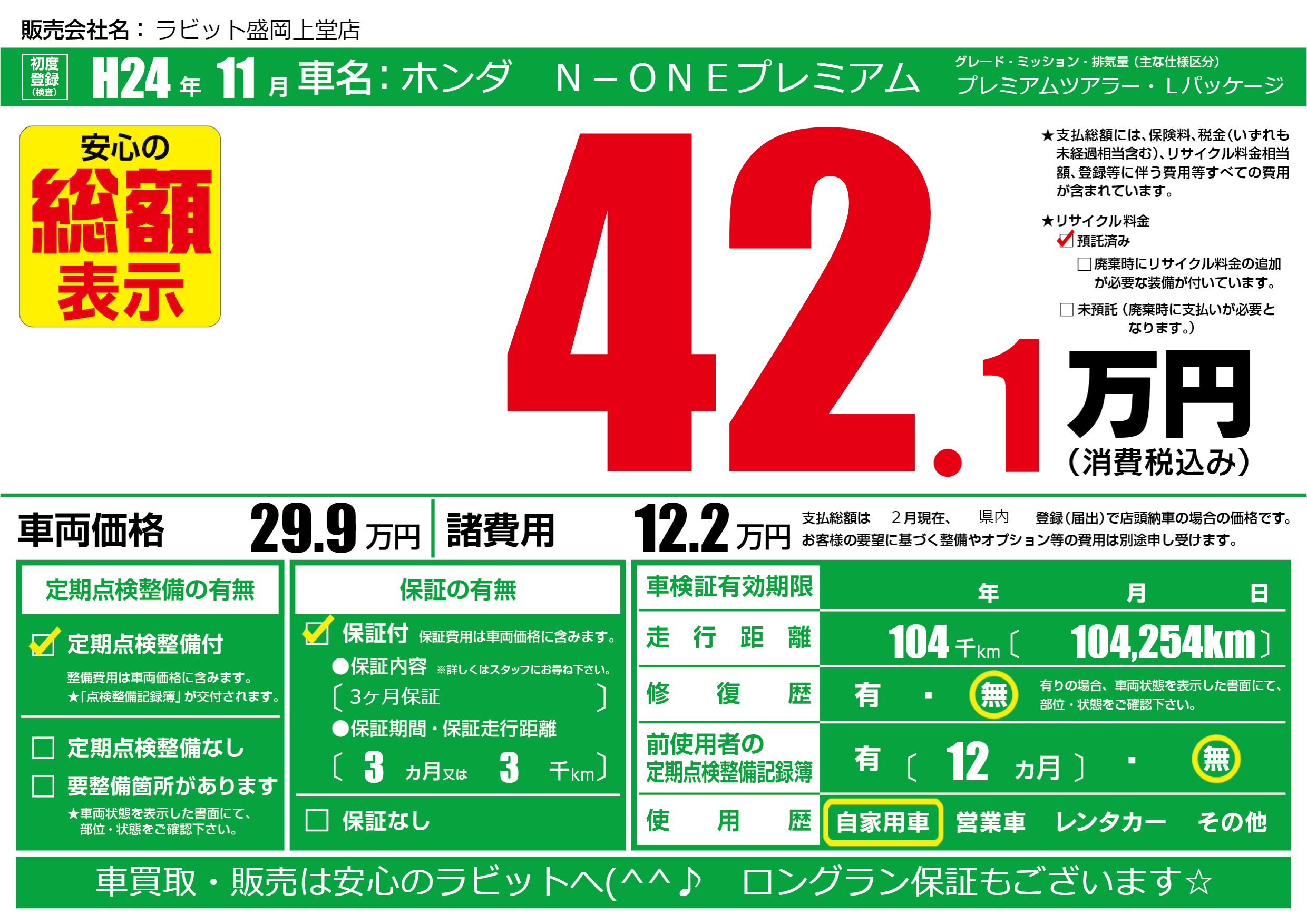 保証内容(3ヶ月保証) 3ヶ月または3千km