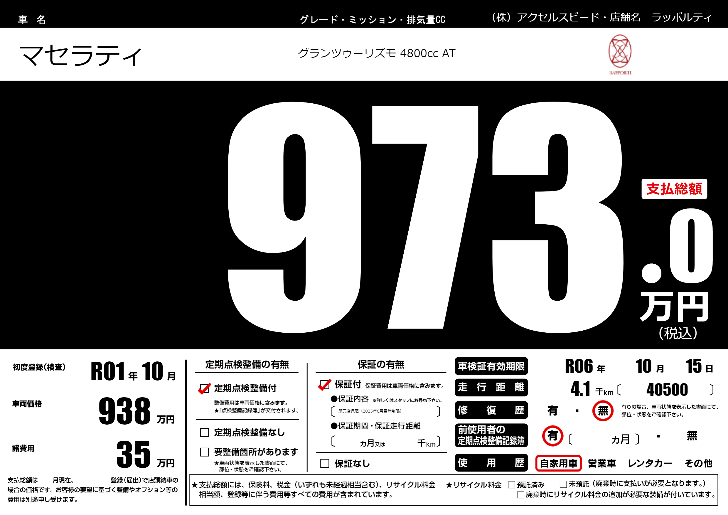 | 車名 | マセラティ | グレード ミッション 排気量 |
