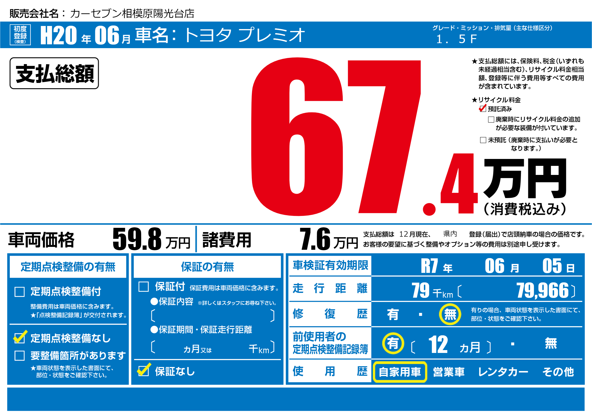 | 車検制限 | R7年 06月 05日 | ||