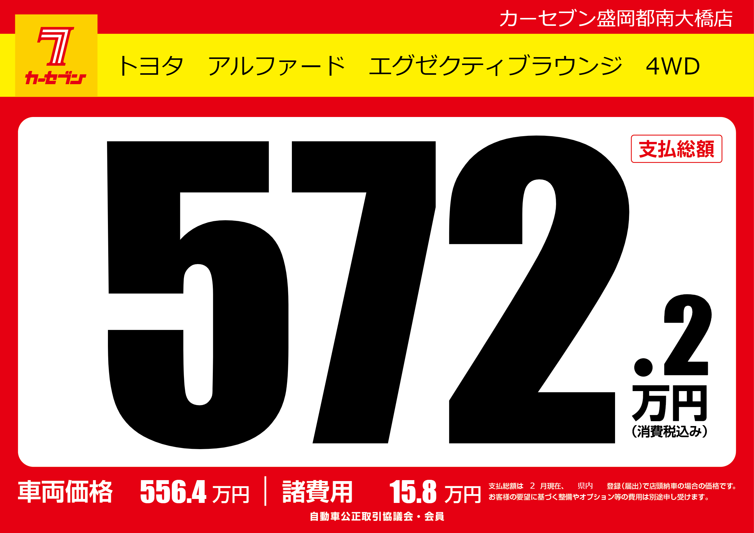 | 車名 | トヨタ アルファード エグゼクティブラウンジ 4WD | グレード ミッション 排気量 |